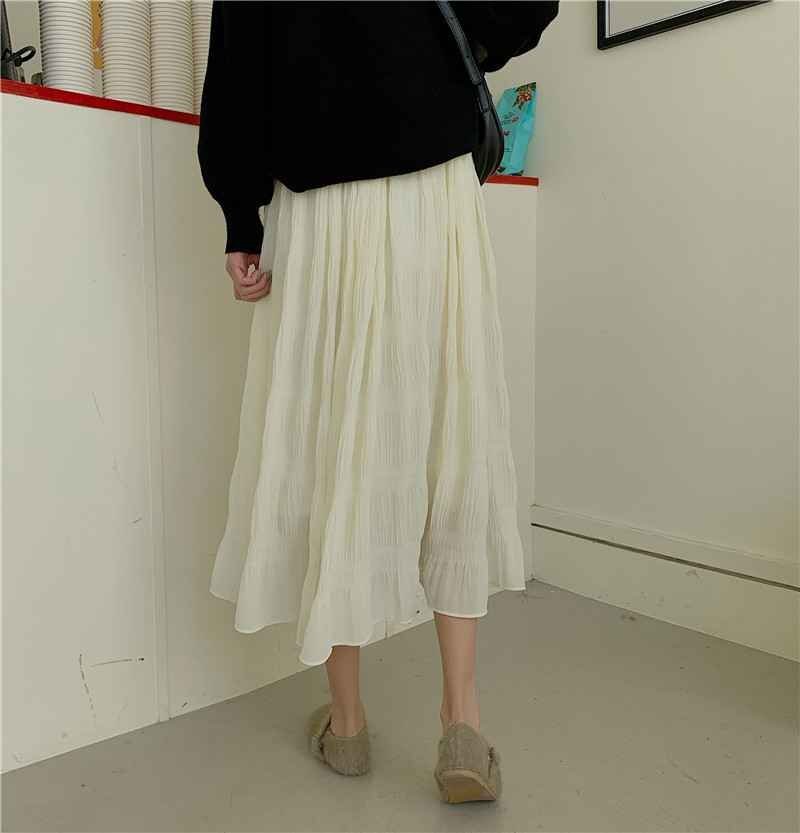 ・脚長・美脚効果のあるミモレ丈で、どんなトップスにも合わせやすく、デイリー使いしたくなる1着です。