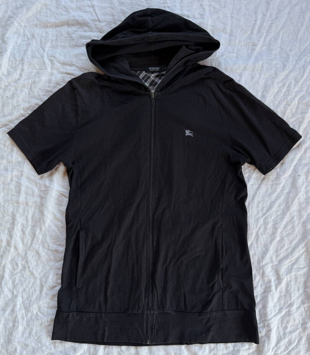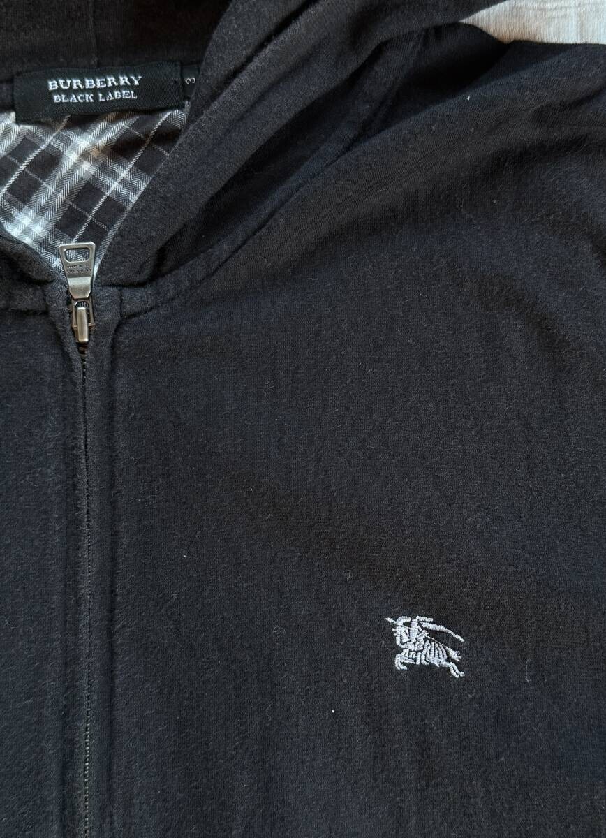 バーバリーブラックレーベル パーカー ジップアップ 黒 3 L ノバチェック ロゴ