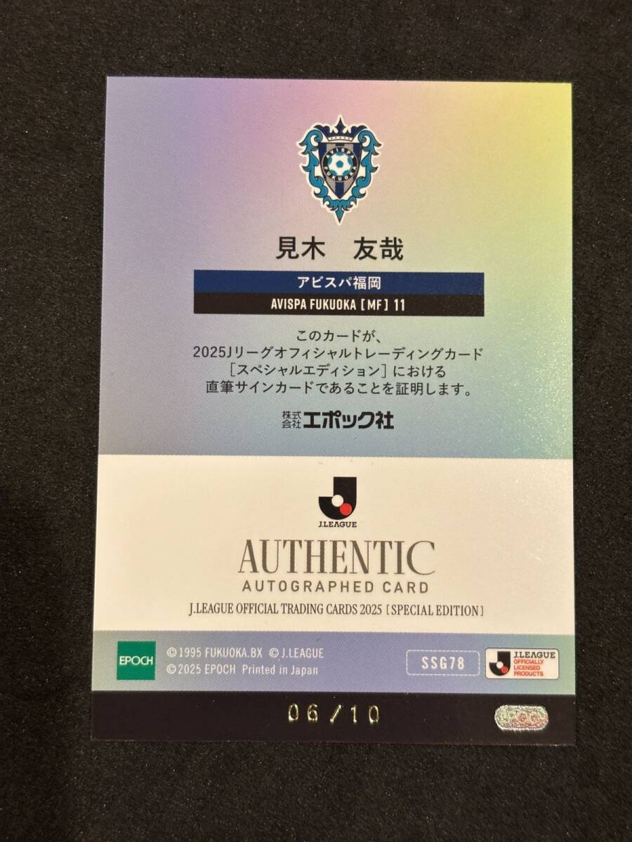 2025 Epoch Jリーグ スペシャルエディション アビスパ福岡 見木友哉 SE版直筆サインカード パラレル版 10枚限定