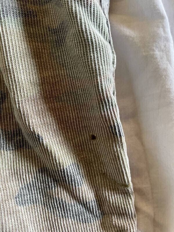 状態に関して、あくまで中古品で多少の使用感はあり、また画像のように膝部分に数ミリの火の粉での焦げ穴がありますこと十分にご了承いただければと思いますが、そちら以外は特に破損なく問題なく利用可能です