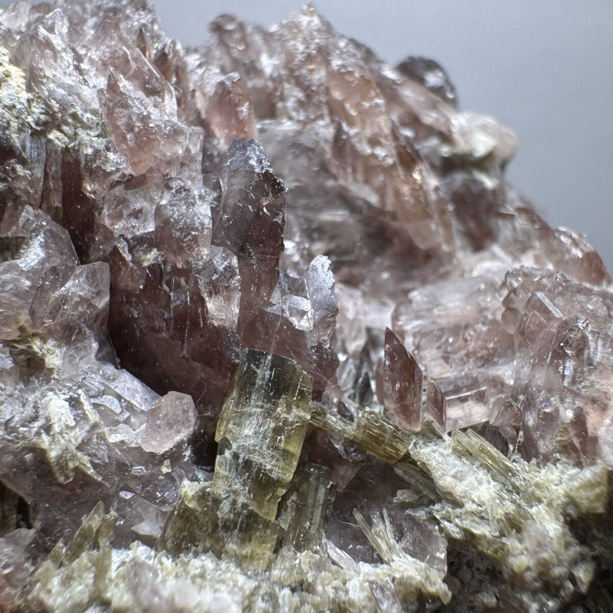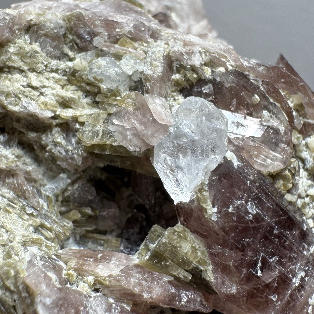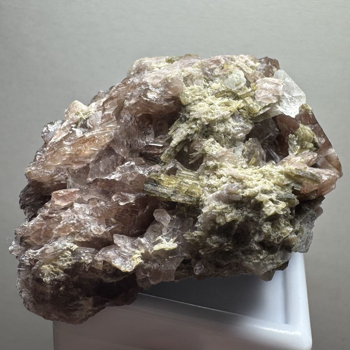 水晶やエピドートが共生している大きなアキシナイトの原石です。
