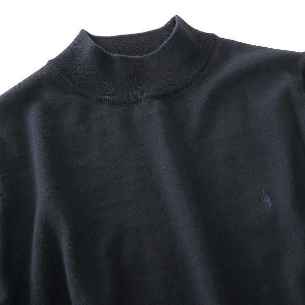 ベーシックなモックネックの長袖プルオーバーのニットです。 ジャケットのインナーにも相性のいい、5cmの衿巾に設計しています。 ワンポイントで左胸にダンディマン刺しゅうが入ります。 防縮加工を施したウール100%の糸を天竺編みにした素材を使用。 ウールらしいふんわりとした肌触りです。 ウォッシャブル仕様なのでイージーケアにも優れます。 |