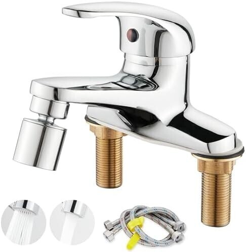 ☆新品☆KOLERTHR 洗面水栓 洗面用混合栓 洗面台蛇口 2穴 ツーホール式 360°回転可能な注ぎ口 2つの吐水モード 冷