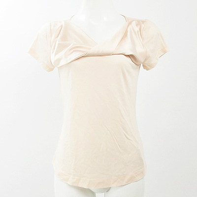 | 胸元のドレープデザインがアクセントになったカットソー♪ ドレープ部分は微光沢が美しいサテン生地が使われており、 カジュアルな中にもお上品な雰囲気のある1着でお薦めですよ。 バックネック部分にゴールドのブランドロゴプレートがあしらわれ、 さりげないアピール有りです☆ お顔周りを明るく、優しい印象を与えてくれるお色目ですので、 パンツスタイルでもレディーライクな着こなしに◎ タグ付き未使用品となります。 肩幅約35cm バスト約84cm 着丈約53cm 袖丈約13cm 【サイズ】:(I38 USA4) 【素 材】:(モダール50%コットン50% 別布/ポリエステル97%ポリウレタン3%) 【 色 】:(薄ピンク) 【程 度】:(S) 管理番号 54140310-007 121 011 | ||||