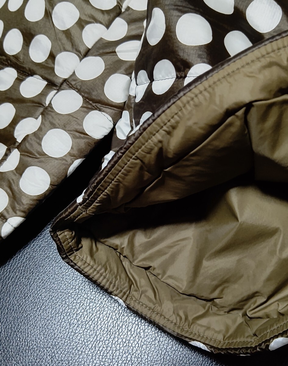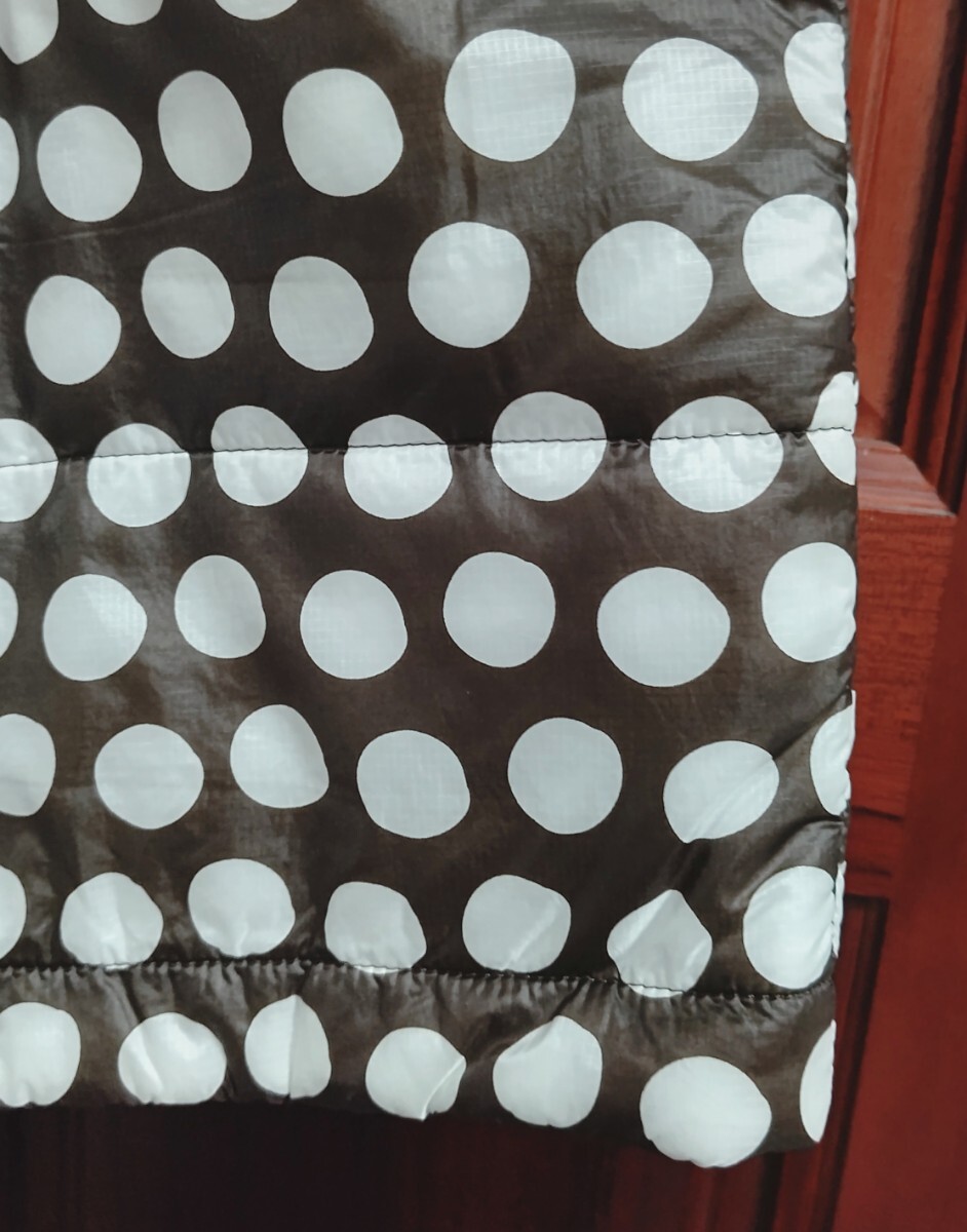 ドット柄のプリントは手書き風の歪みのある円で描かれ、北欧的なテイストを楽しめます。行動を終えてからリラックスする際にも重宝するモデル。携行も簡単です。