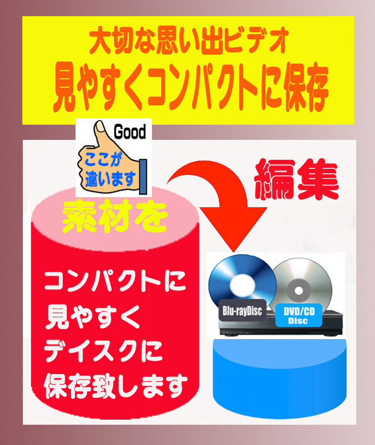 素材を「おまかせ編集で、コンパクトにデイスクに保存」致します。