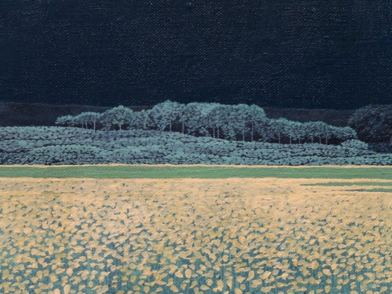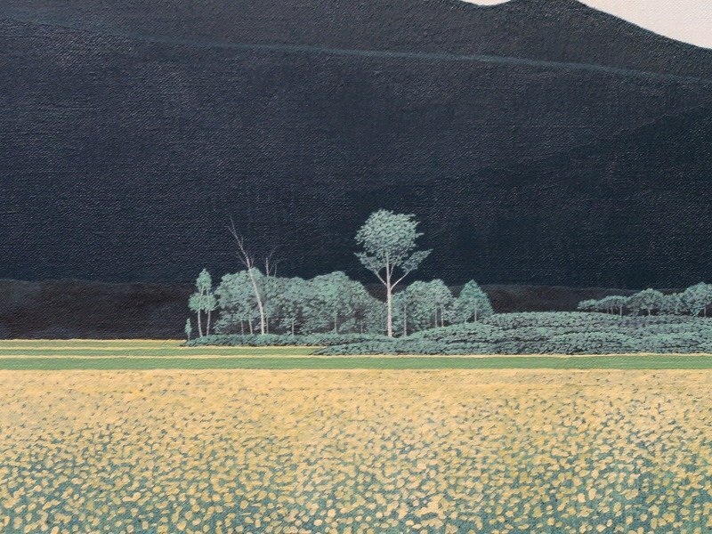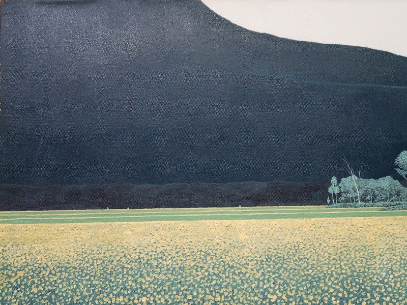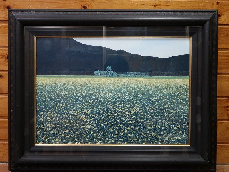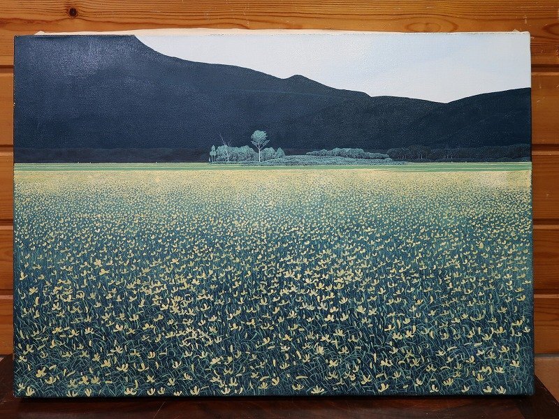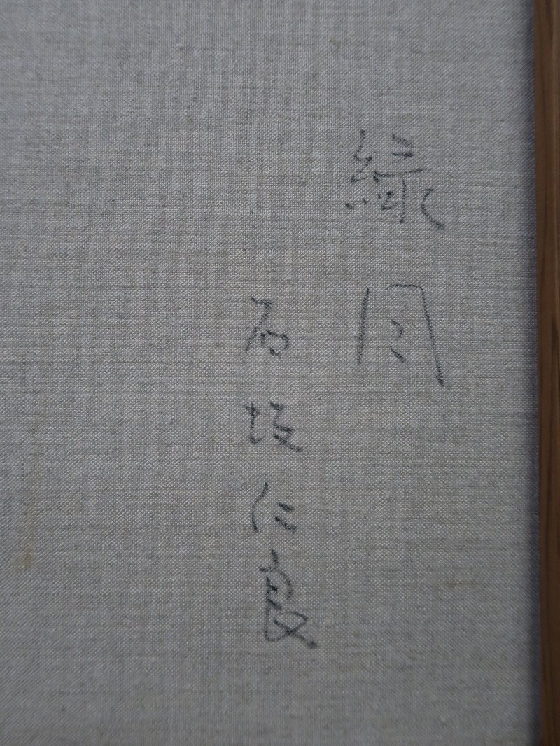 【青宝】111040石坂仁良「緑月」油彩M15 肉筆 額装(4294804/39)