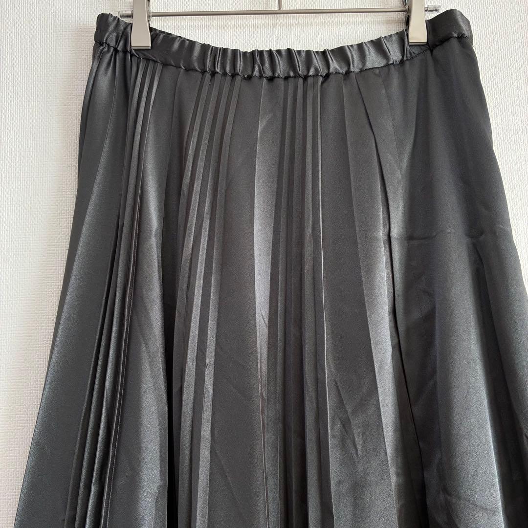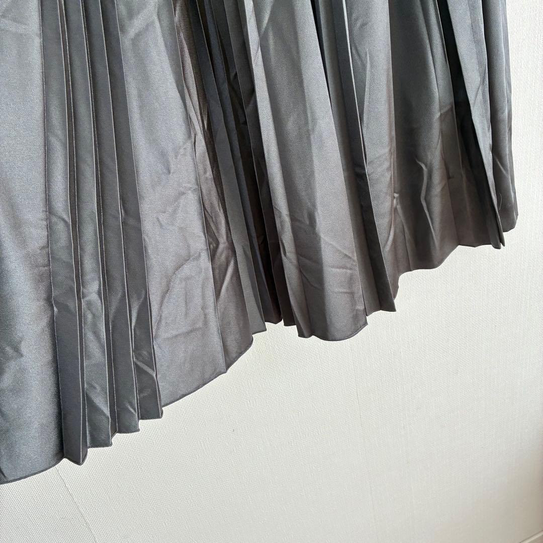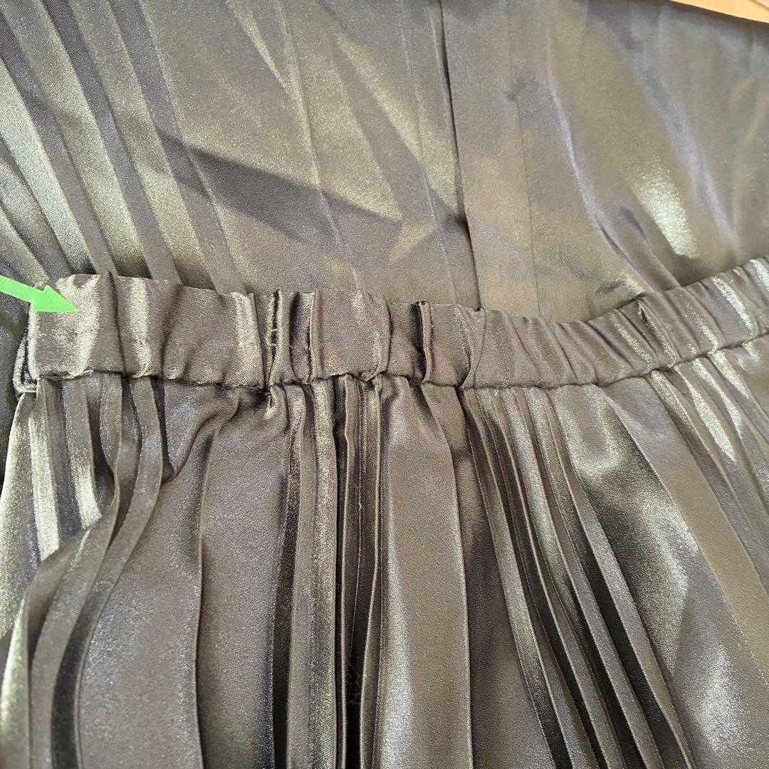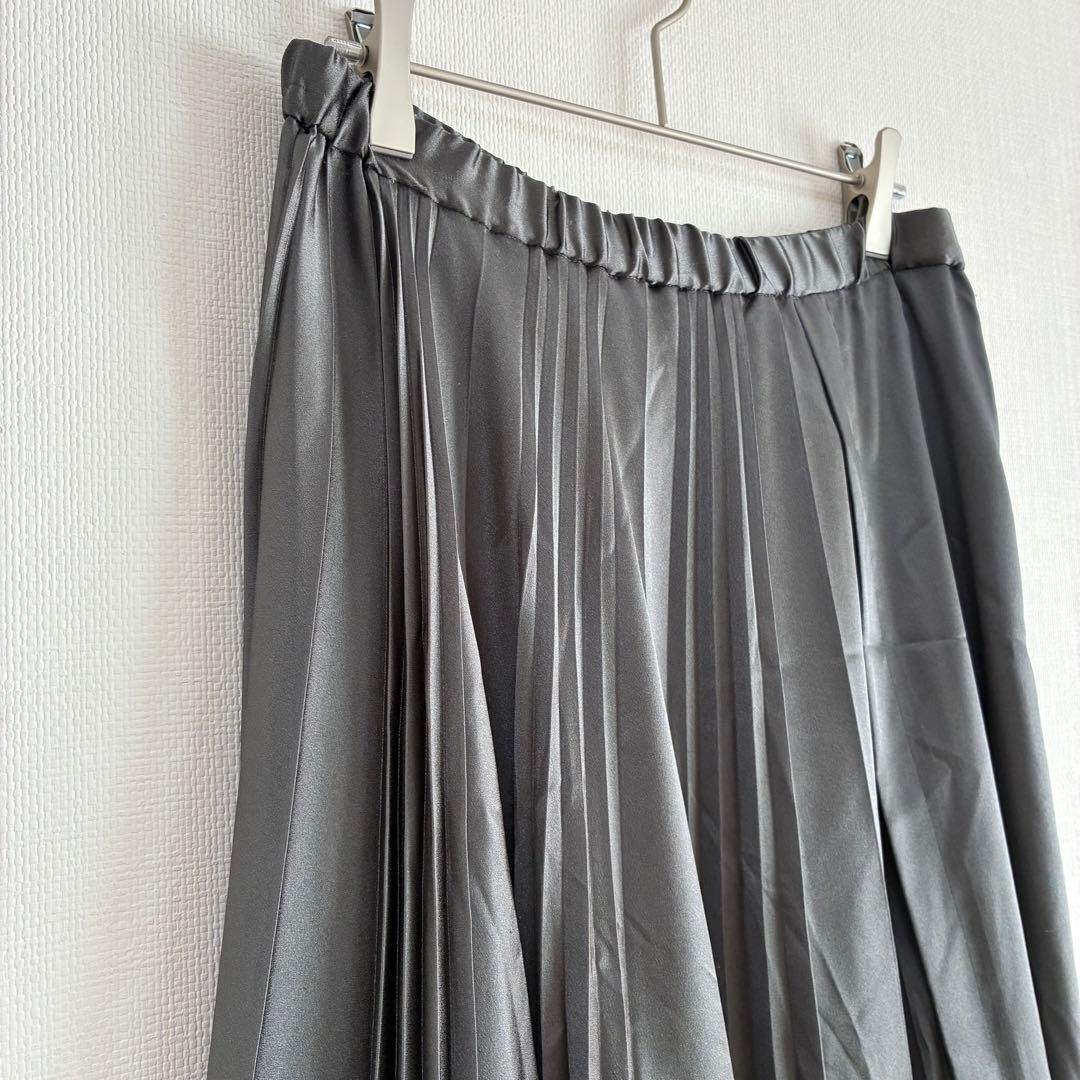 カーキ 光沢感 ロングプリーツスカート マキシ丈 無地 通勤 きれいめ オフィスカジュアル デート クリスマス イベント 上品