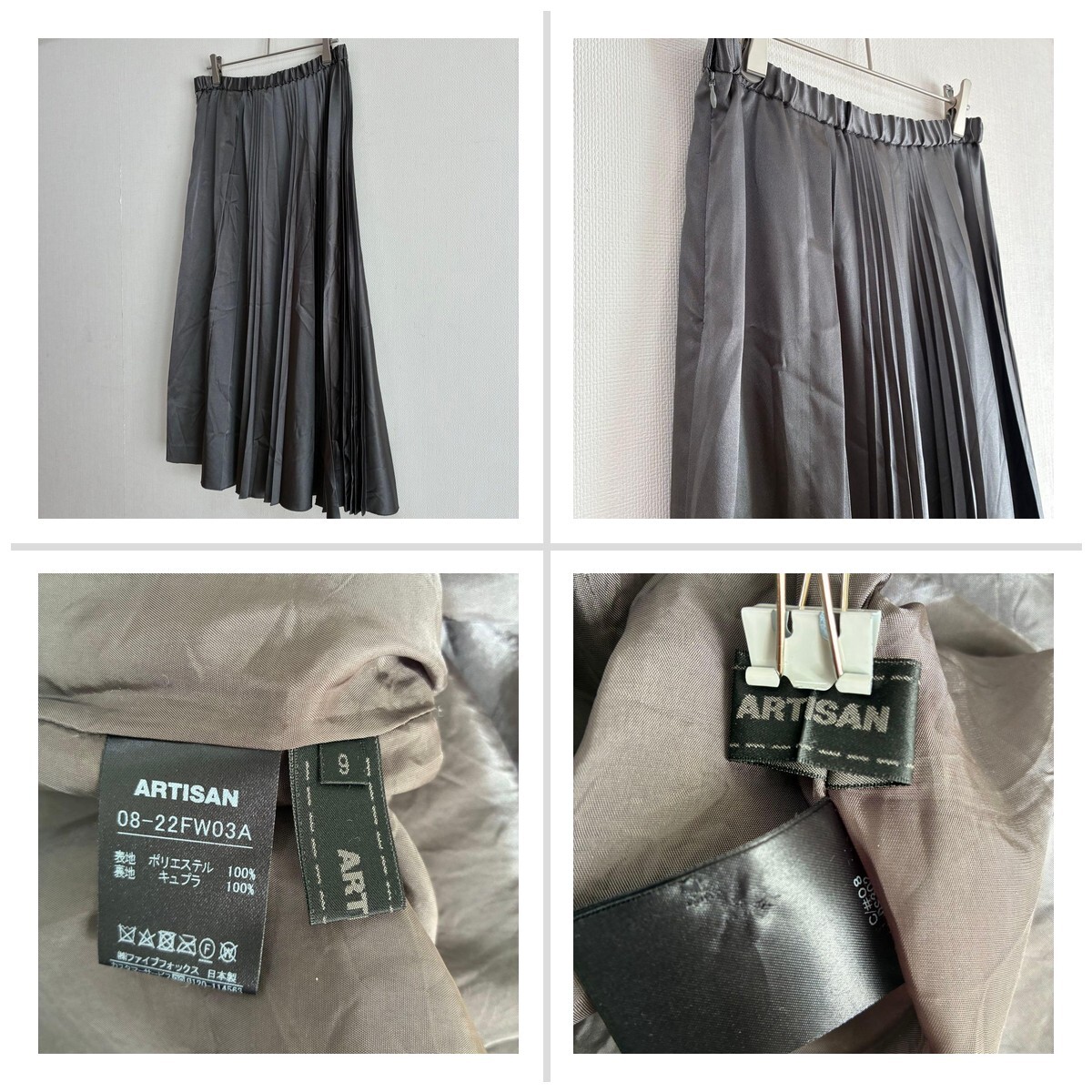 【アルチザン】ロング スカート M カーキ 光沢感 プリーツ 通勤 クリスマス 08359A