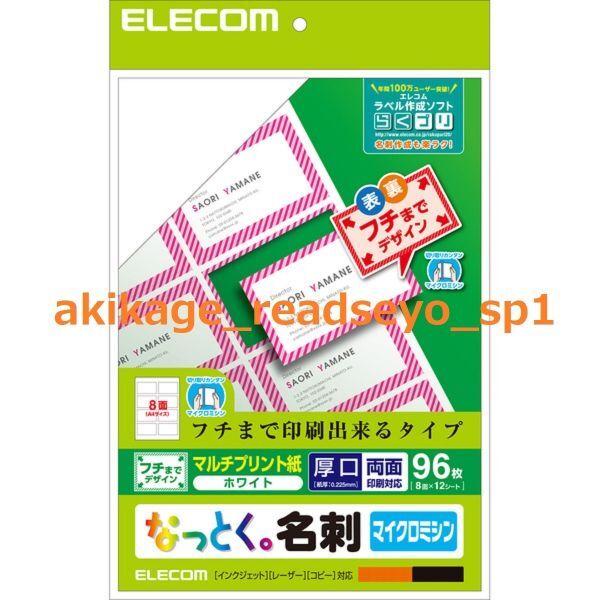 *ELECOM/×数量(3)まで全て同梱包、送料¥198で発送します。 *フチまでしっかりデザインできる! 折りたたんで簡単に切り離せるマイクロミシンタイプの名刺用紙。 *インクジェット/レーザープリンタ/コピー機でも使用できる マルチタイプの用紙です。 *折りたたんで簡単に切り離せるマイクロミシンタイプの名刺用紙です。 *名刺と名刺の間に余白がある8面付タイプで、