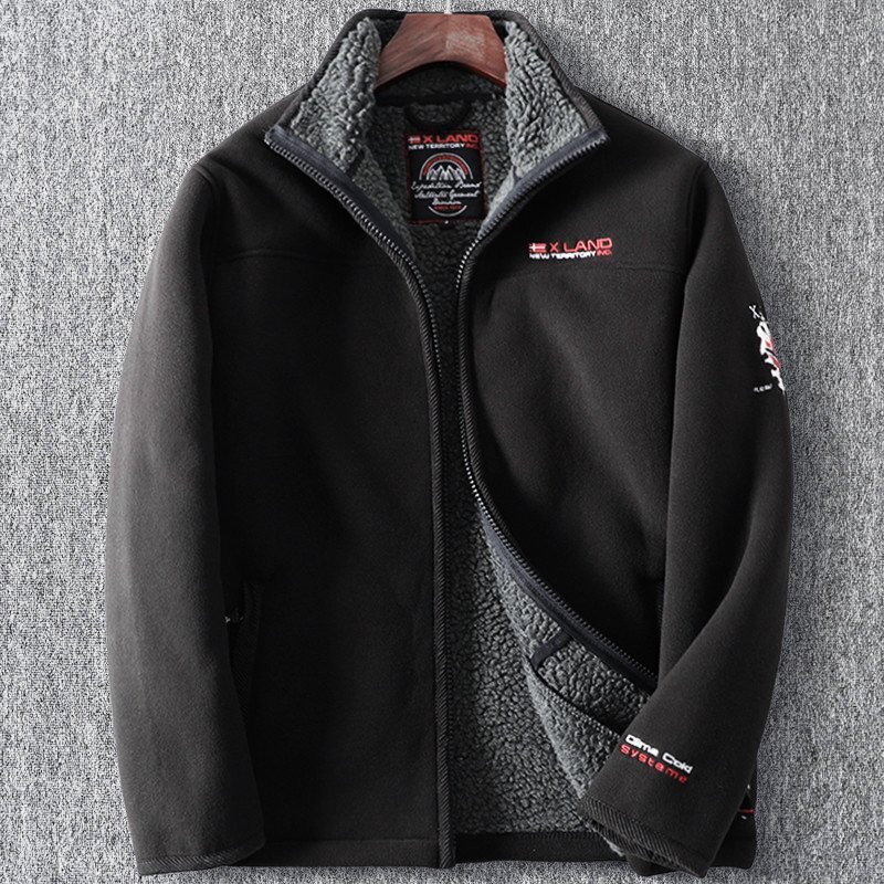欧米サイズ 新品 フリース ジャケット デザイナーズ ブルゾン トラックジャケット 暖かさ 裏ボア 厚手 防寒 裏暖 メンズ 秋冬 フードブルゾン スタンドカラー ジップ  アウター 黒 T1051-L