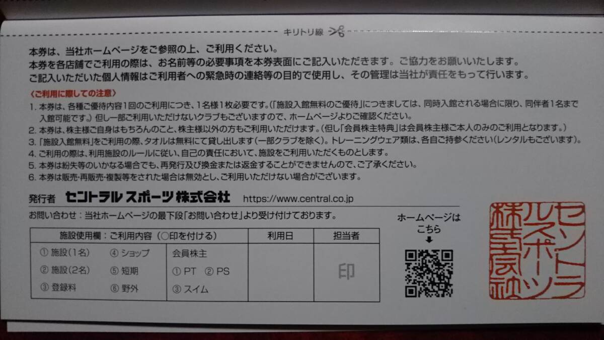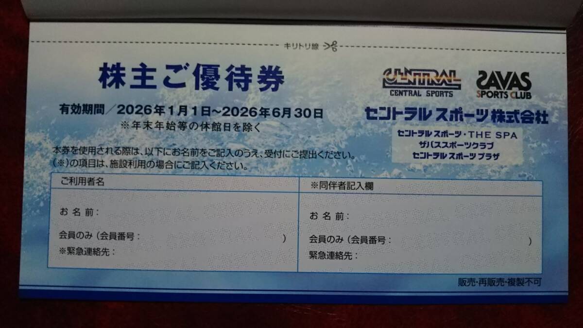 最新★2026年6月30日迄★ セントラルスポーツ 株主優待券 6枚