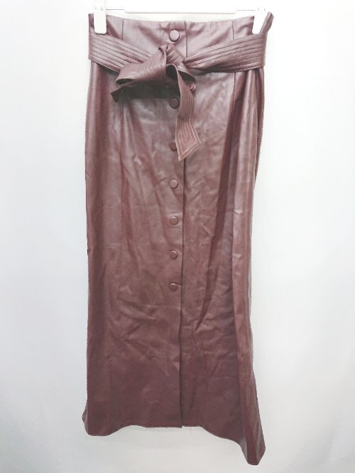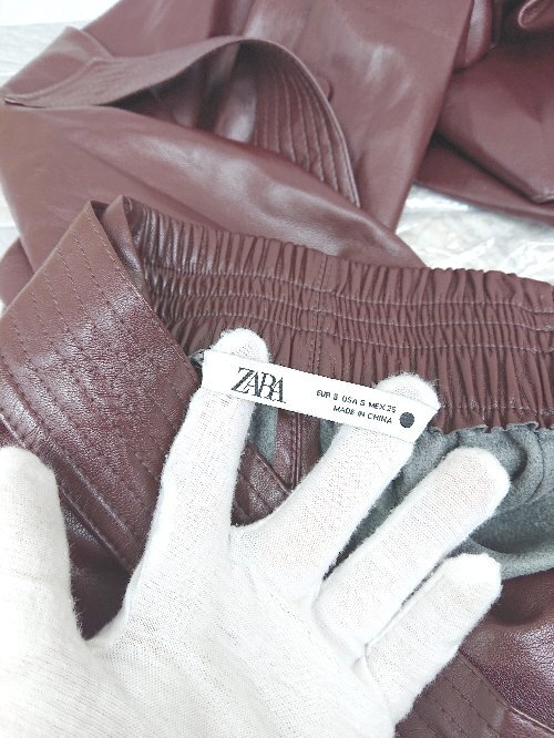 ◇ ZARA ザラ フロントボタン フェイクレザー 膝下丈 ナロー スカート サイズS ブラウン レディース P