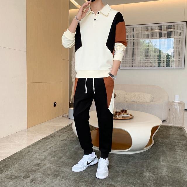 セットアップ メンズ 上下セット スウェット ルームウェア ポロシャツ スポーツウェア 運動着 秋 冬 カジュアル 新作 ベージュ M