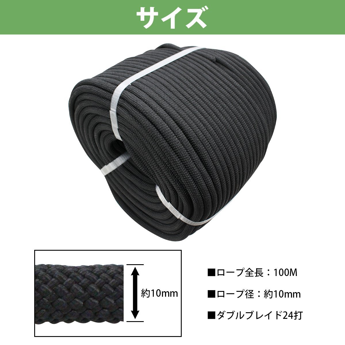 24打 10mm 100m 係留ロープ フェンダーロープ ダブルブレイド 黒/ブラック マリン ロープ 船 係船 ロール 10ミリ アイ加工無