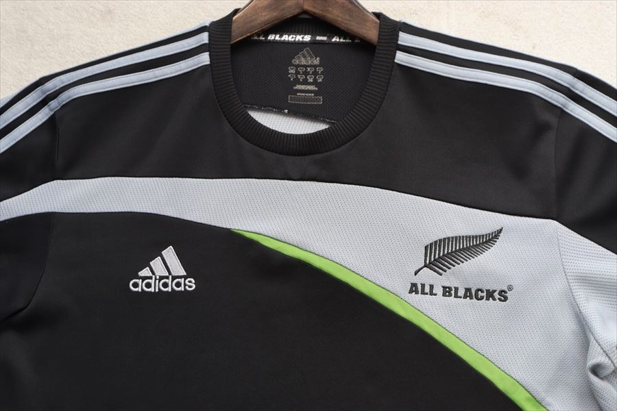 ALL BLACKS オールブラックス ラグビーシャツ アディダス製 L 黒/グレー