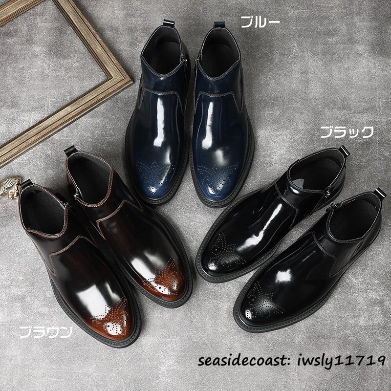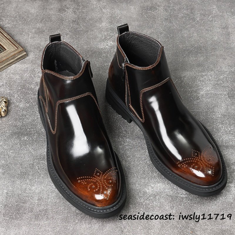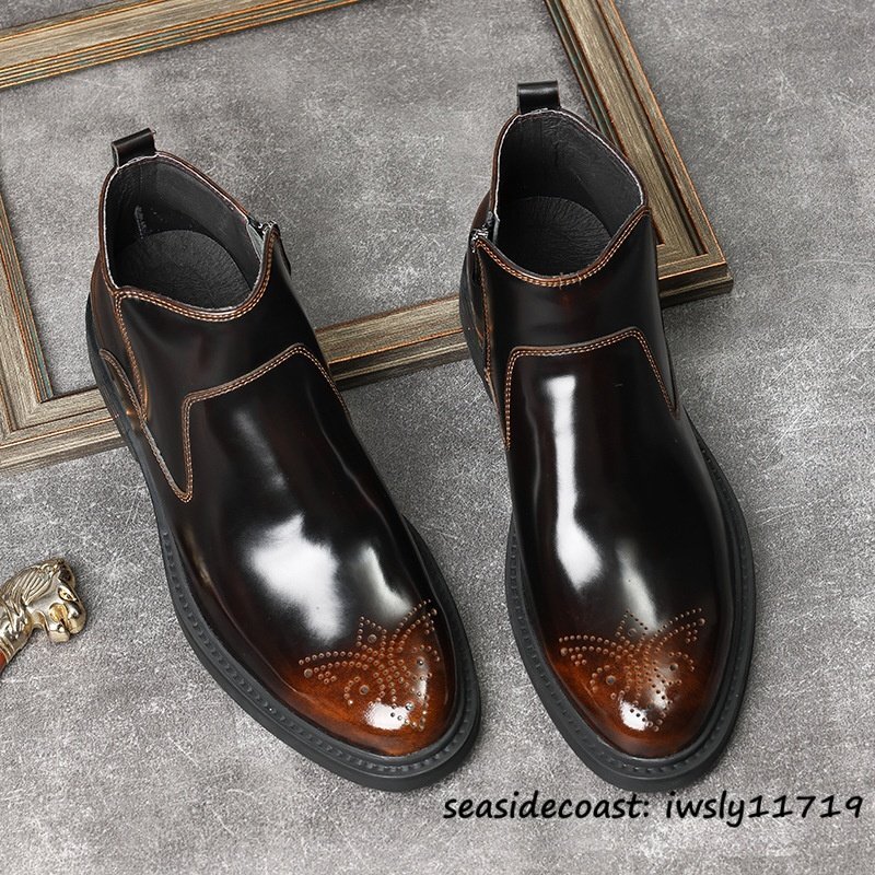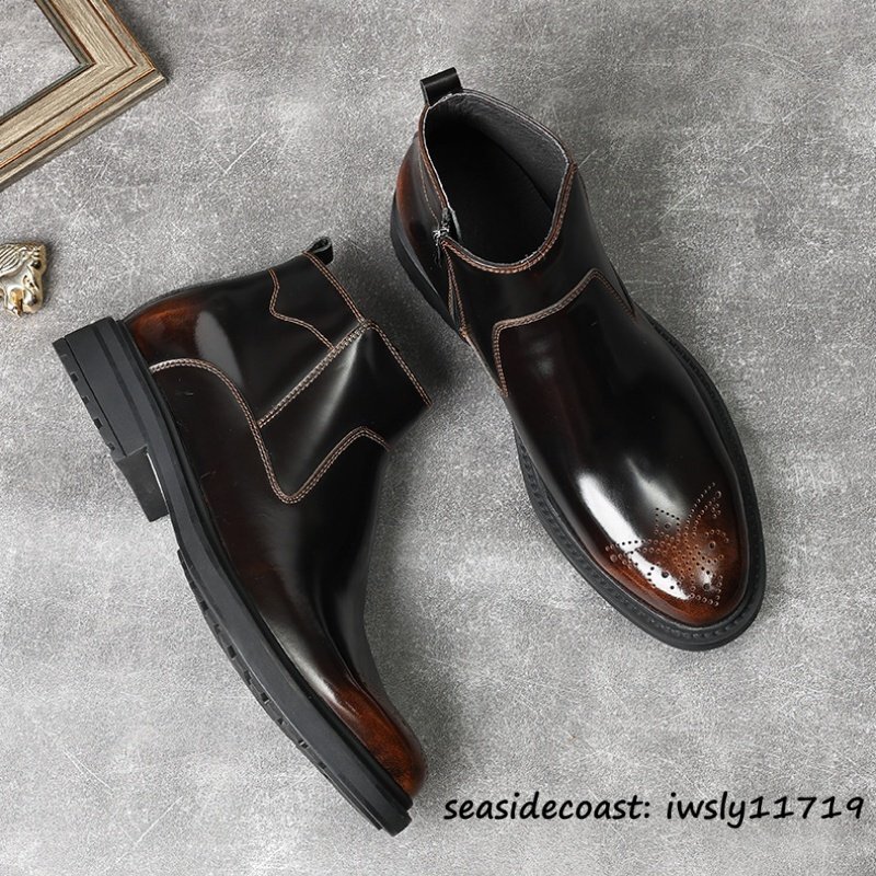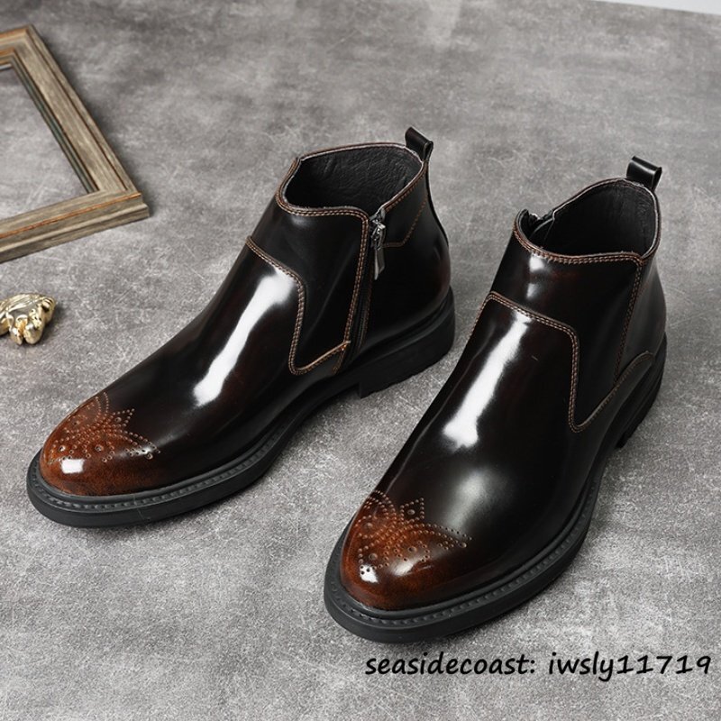 定価12万■最高級 ショートブーツ メンズ マーティンブーツ 本革 レザーブーツ 職人手作り 彫り 牛革 ビジネス 皮靴 宴会 ブラウン 26.5cm
