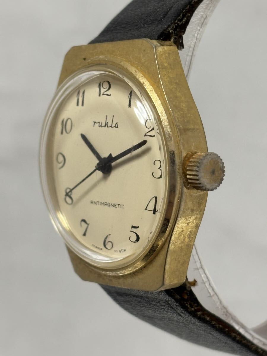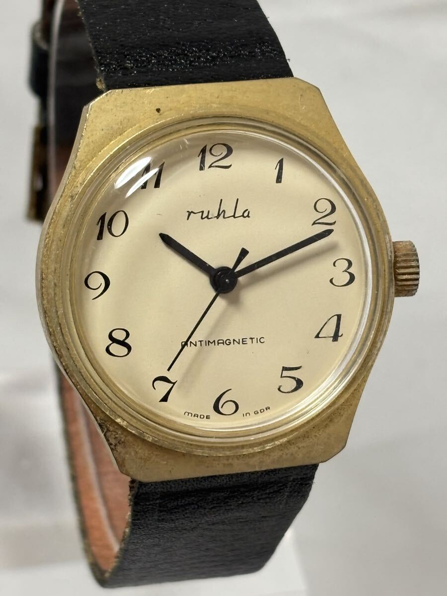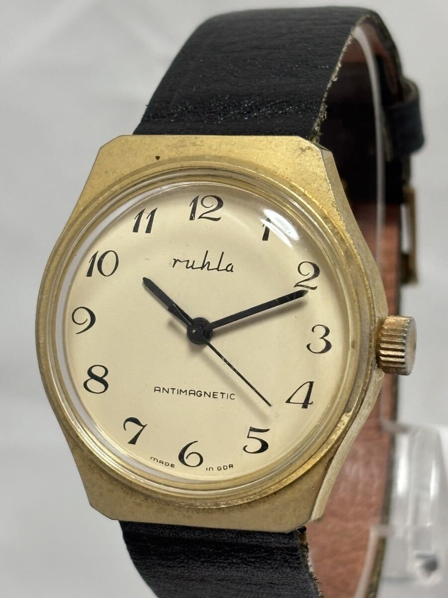 1円〜【稼働品】ruhla ルーラ ドイツ製 手巻き アイボリー メンズ 同梱不可