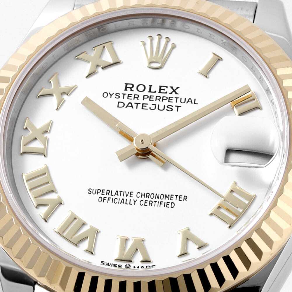 | モデル情報 | 1945年に誕生し、金属塊から削りだした防水性の高いオイスターケース、午前0時頃瞬時に日付けが変わるデイトジャスト、全回転式ローターを搭載したパーペチュアルと、ロレックス三大機構の全てを搭載したモデルです。こちらはフルーテッドベゼルを搭載した31mmのオイスターケースがエレガントな輪郭を際立たせているモデルです。 |