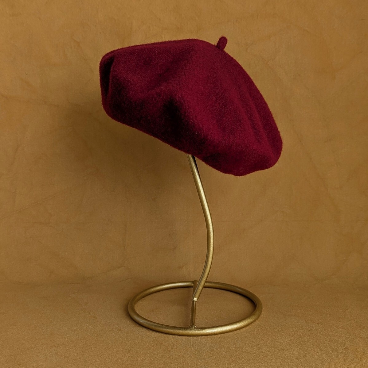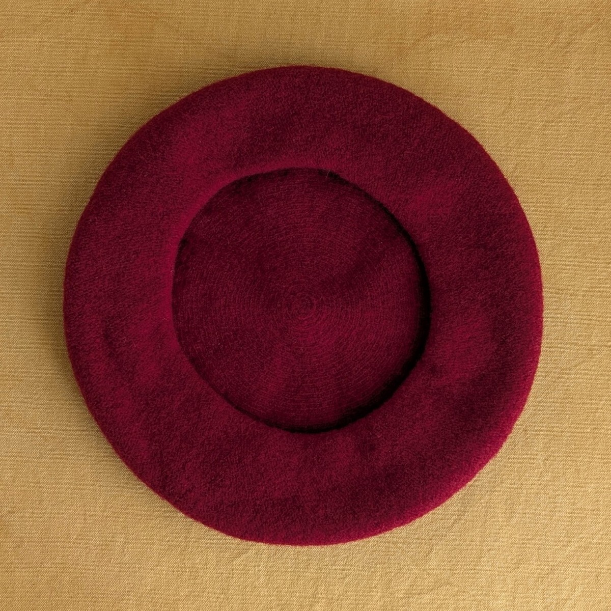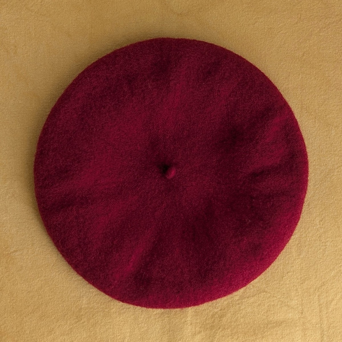 年代不明 ヴィンテージ チェコスロバキア製 ベレー帽 ニット 帽子 ウール 赤系バーガンディー 100%wool レディース メンズ 美品
