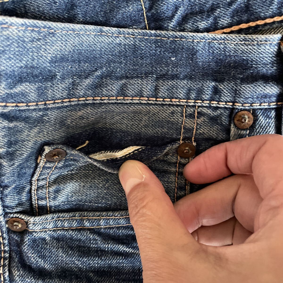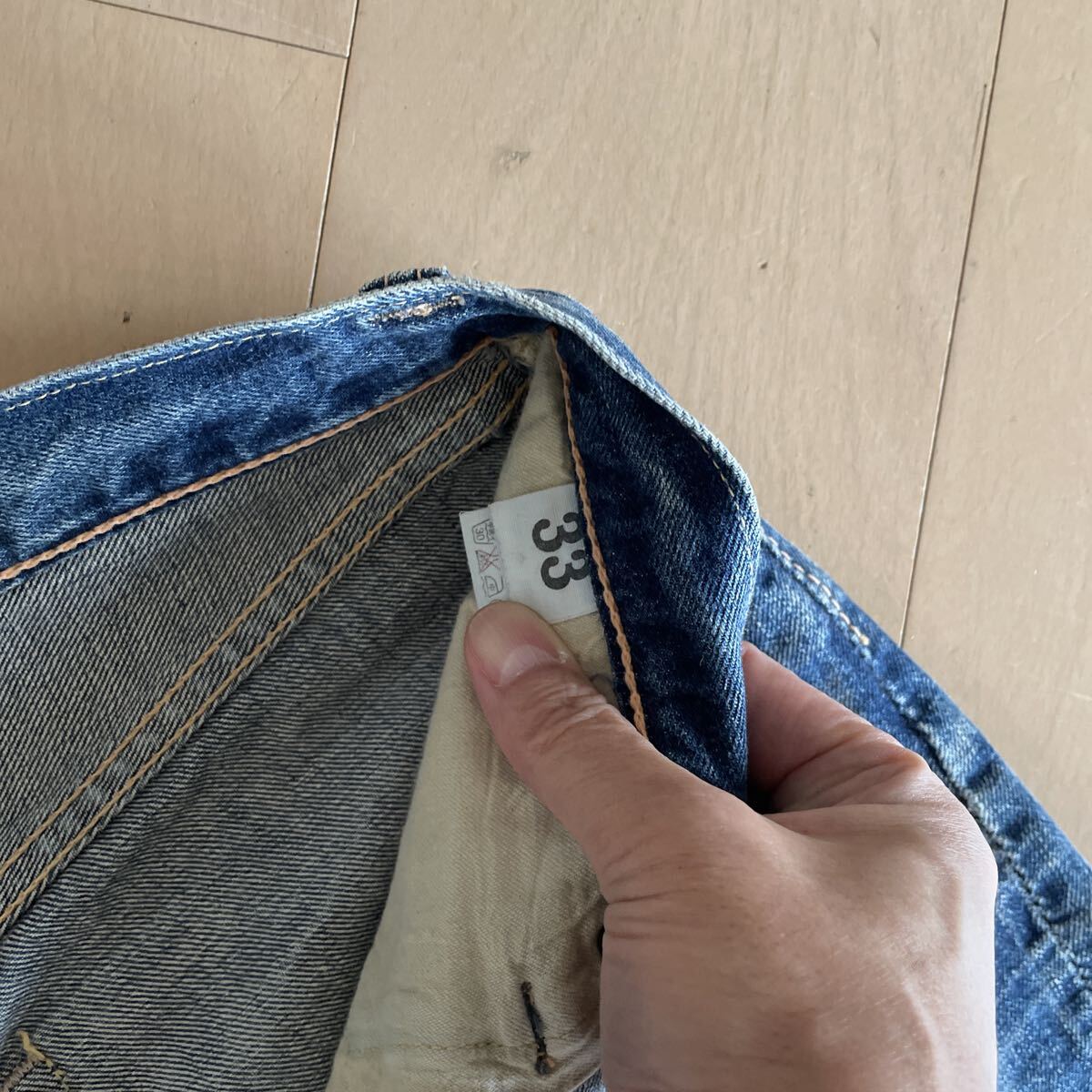 表記サイズはW33です。実寸サイズは、ウェスト44x2センチ、股下79センチです。素人採寸ですので多少の誤差はご了承ください。