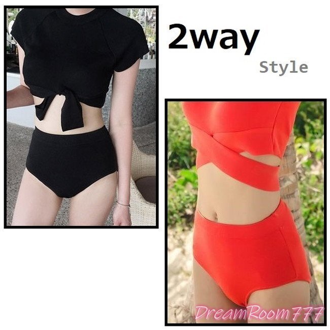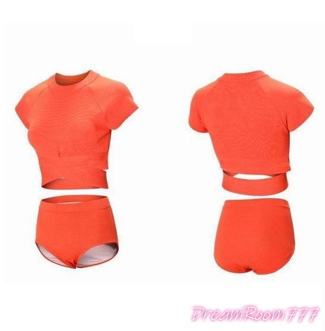 ウエストクロス セパレート ビキニ 【XL】オレンジ Tシャツtype 上下 レディース 水着 ラッシュガード 日焼け止め K-210