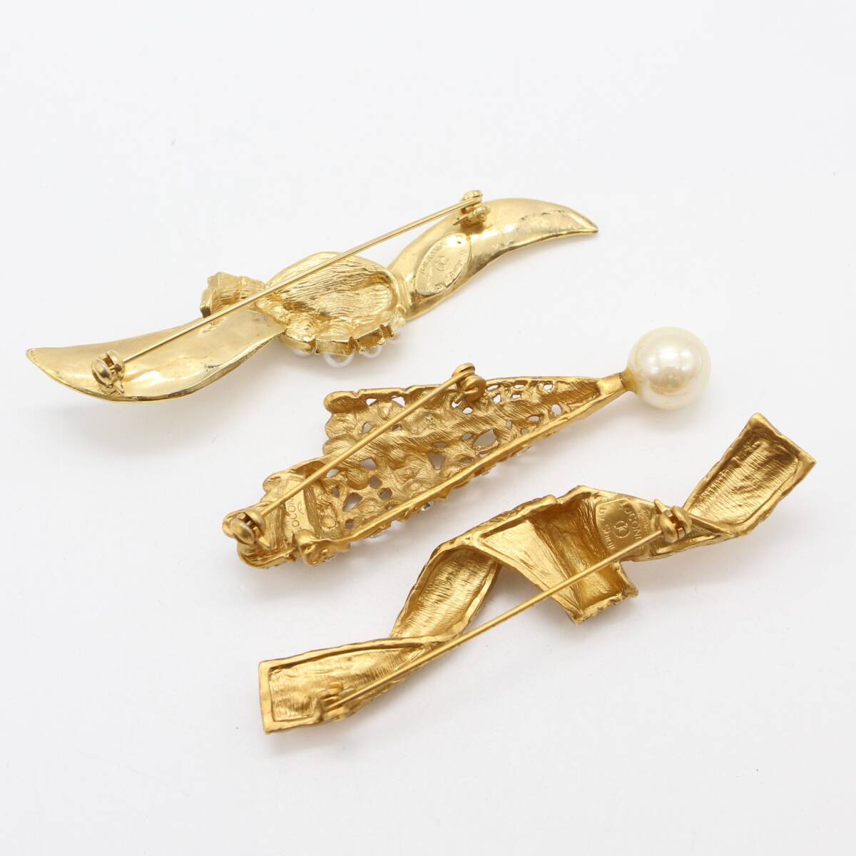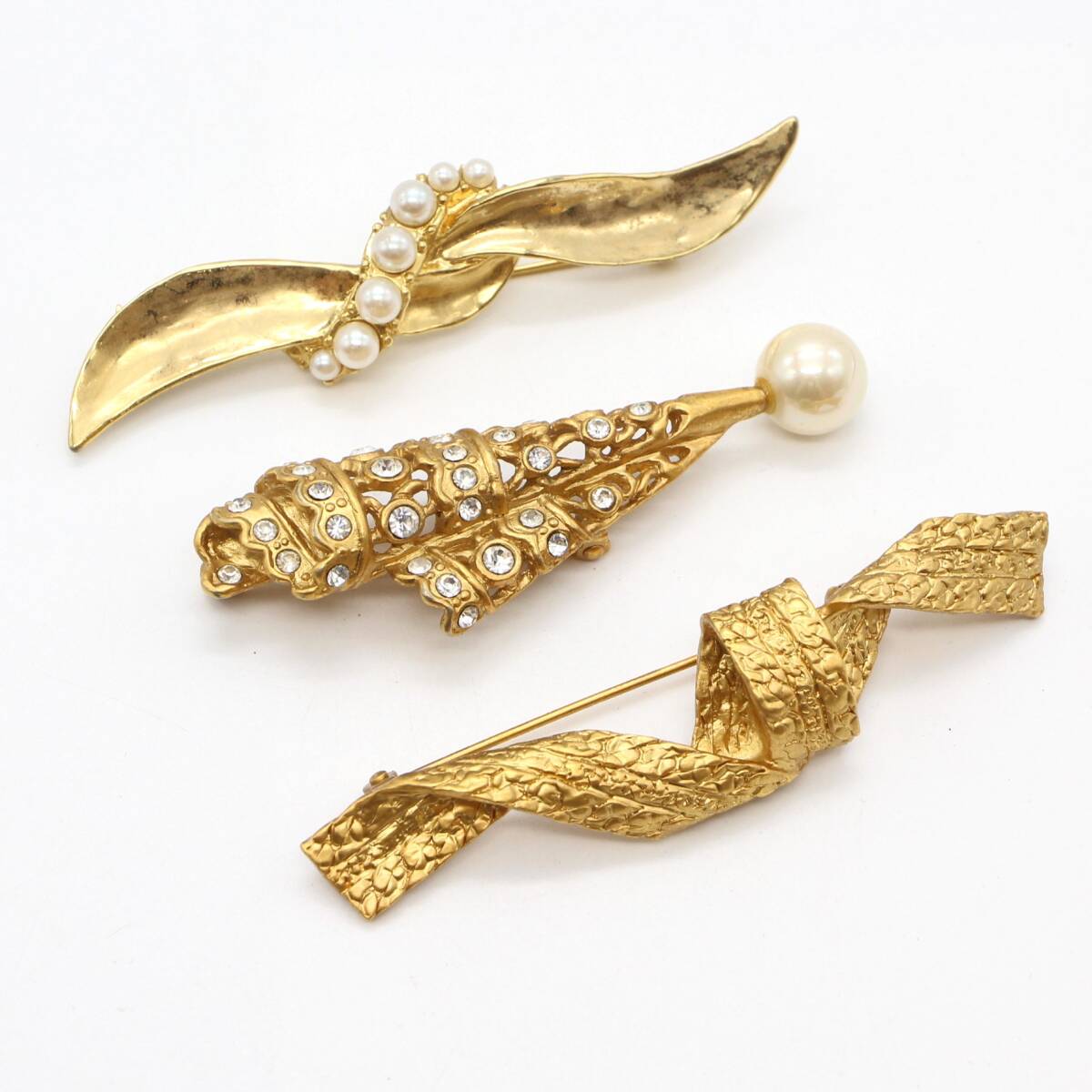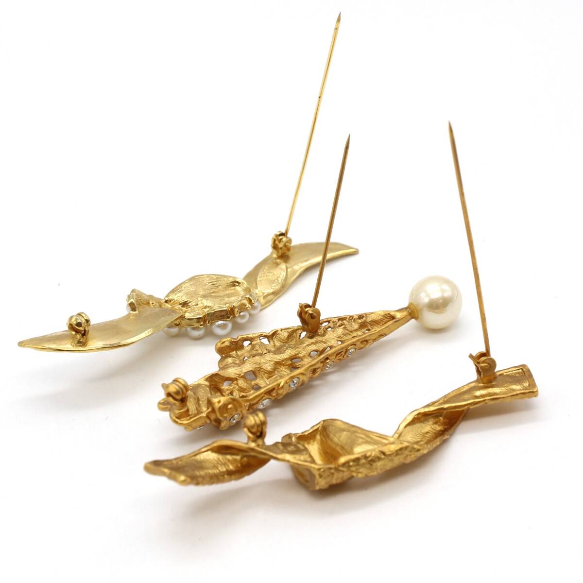 【JOCONDE ジョコンダ】 ブローチ 3点セット アクセサリー ゴールド ラインストーン フェイクパール レディース 希少 ①