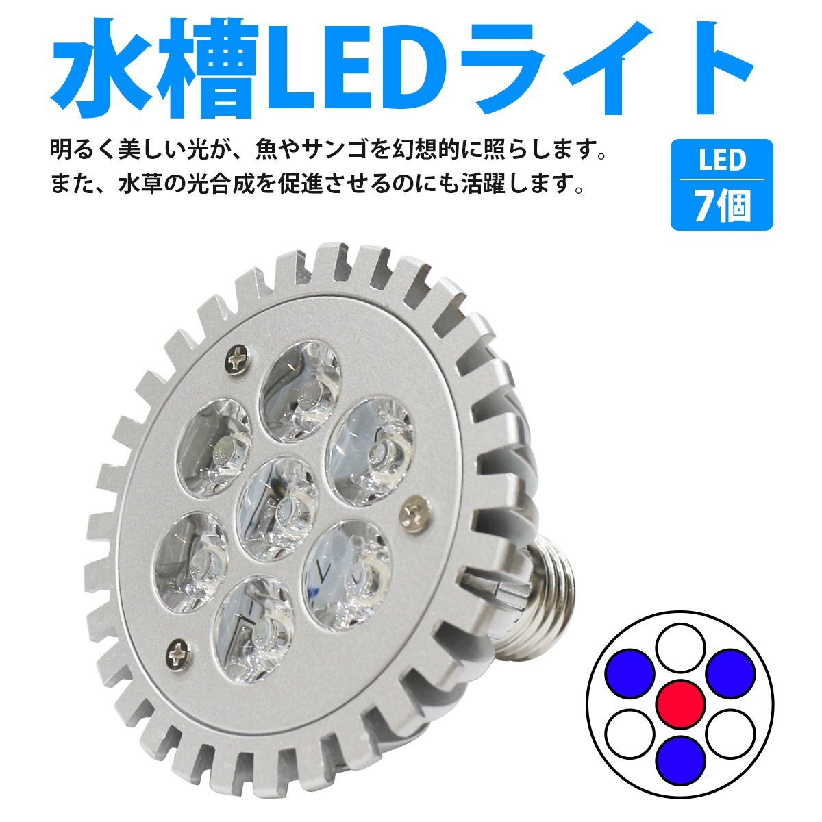 7LED 青3白3赤1 7W 口金 E26 水槽 用 スポット ライト 電球 アクアリウム 電球 照明 植物育成 水草 サンゴ 熱帯魚 観賞魚 LED