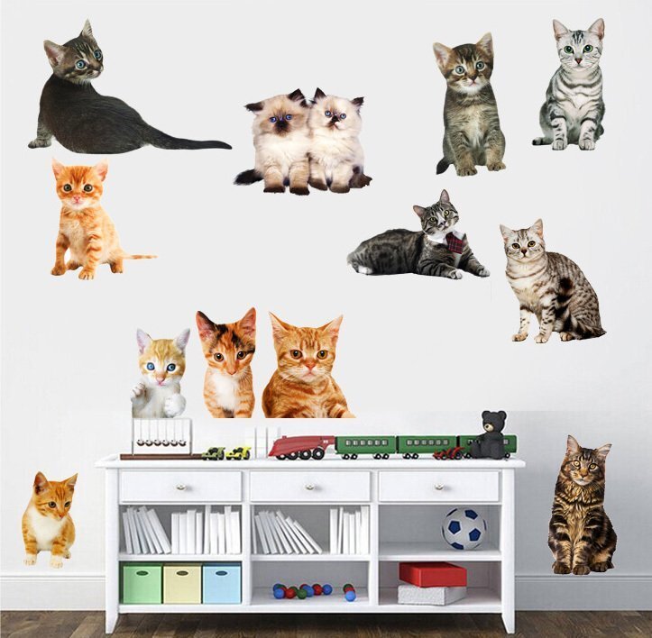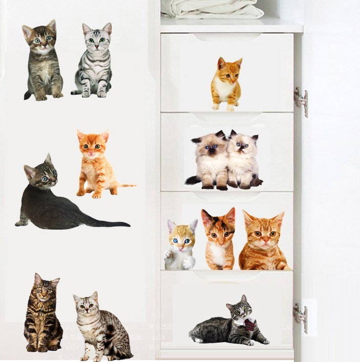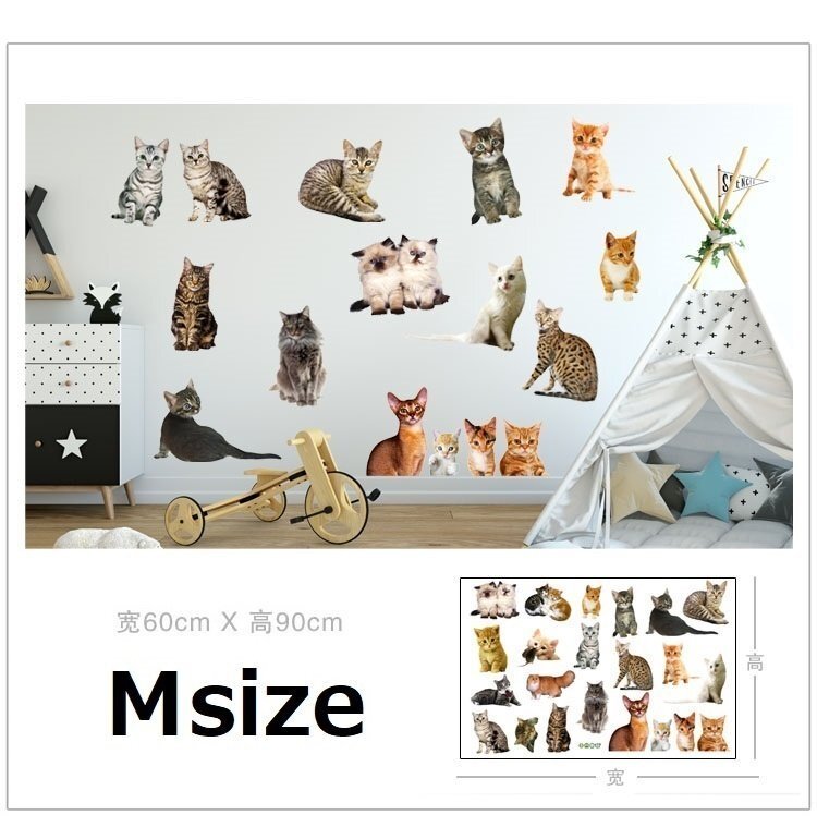 超リアル【C252 にゃんこ 猫ステッカー M】ウォールステッカー 防水 賃貸 壁画アート 壁飾り はがせるシール 床 壁