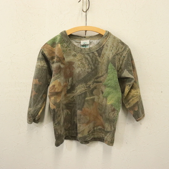 KD570 90sビンテージ J.Tuohy’s 長袖Tシャツ USA製■1990年代製 表記2Tサイズ ブラウン リアルツリーカモ ロンT 柄 子供服 キッズ