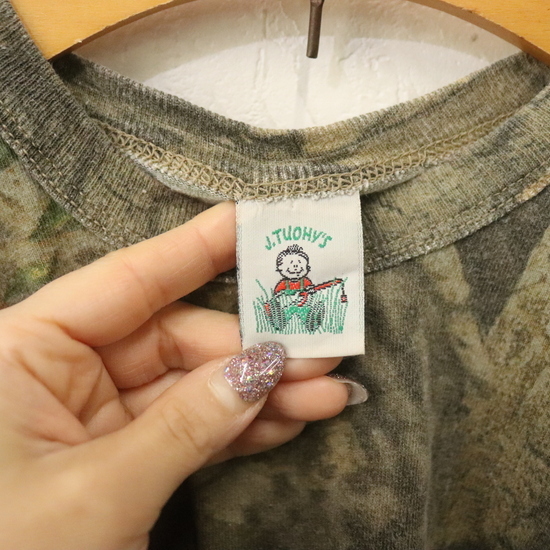 商品名 KD570 90sビンテージ J.Tuohy’s 長袖Tシャツ USA製■1990年代製 表記2Tサイズ ブラウン リアルツリーカモ ロンT 柄 子供服 キッズ