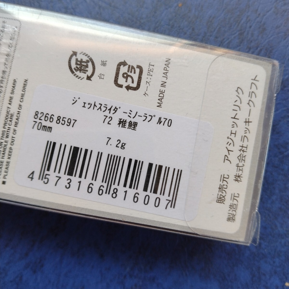 商品名 : ラッキークラフト×アイジェットリンク ジェットスライダーミノー ラプル70 稚鯉