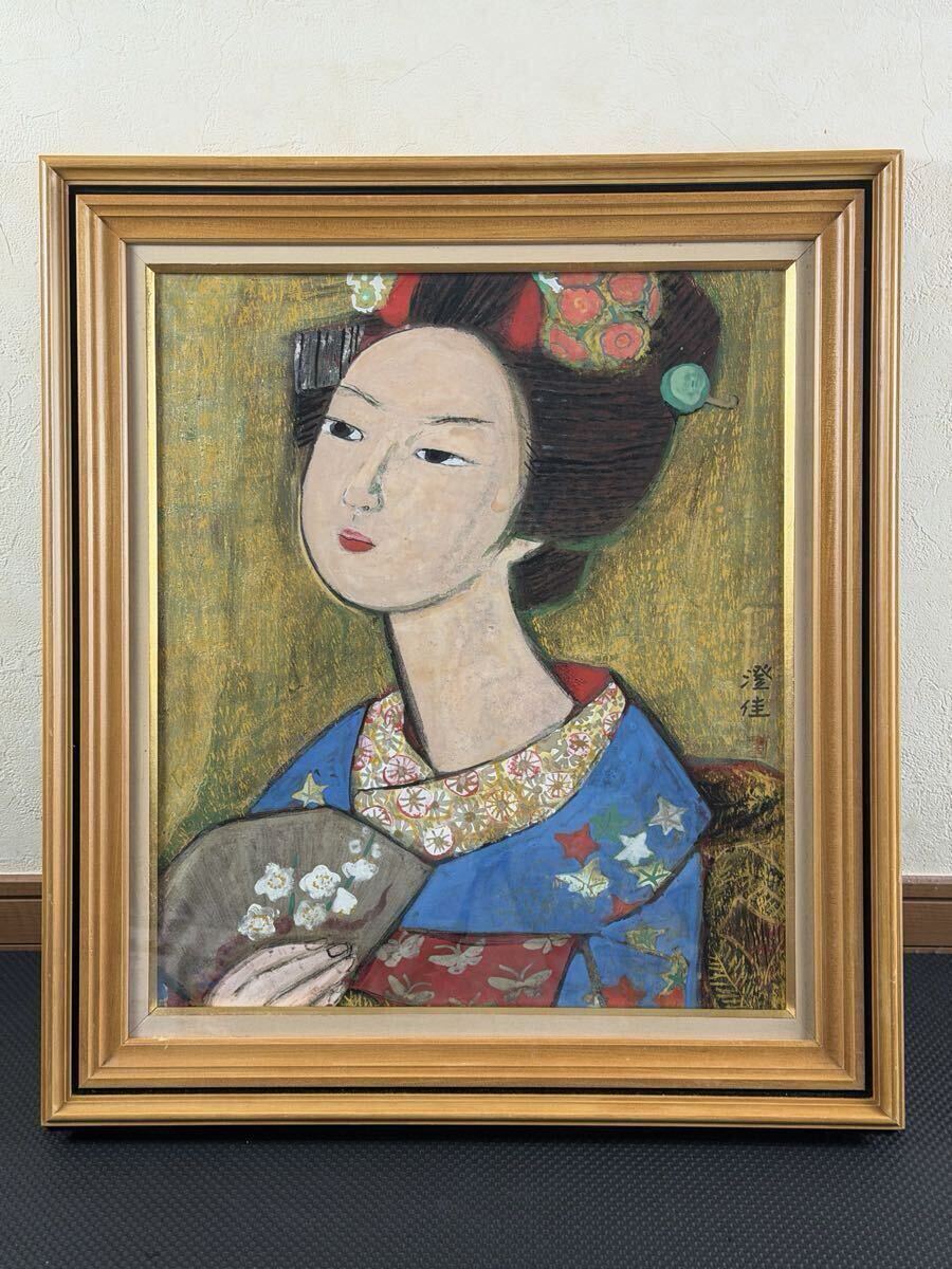 小松澄佳「舞妓」日本画 共シール 額装 タトウ箱 黄布 和美人 師:小倉遊亀