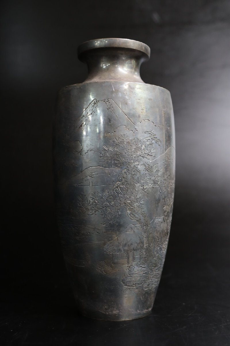 | 商品名 | 【江】大勝堂 純銀製 山水楼閣風景文花瓶 重量約455g 高さ21㎝ 純銀刻印 在銘 古美術品(花器花入花生飾壺)X2072 CCTABytie CBiroe |