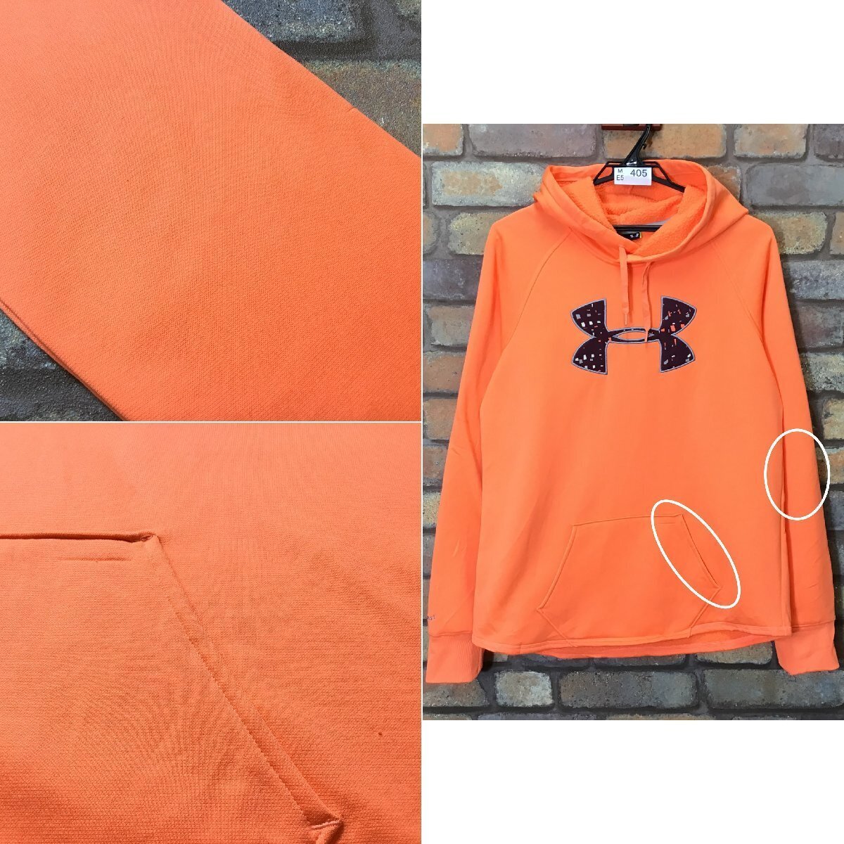 合計落札金額¥8,000円以上で、、、 送料無料!! ※こちらからの[合計支払い金額通知]をご確認の上、お支払い下さい♪ -------------------------------- 【 UNDER ARMOUR 】 COLDGEAR STORM BIGロゴ プルオーバーパーカー ● USA輸入・正規品 ● ● 海外サイズ規格 ● -------------------------------------------------------- 前面下方、左袖先に軽い伝線傷、左袖に軽微なシミがあります。 他に目立つ傷・汚れはありません◎ ☆UNDER ARMOUR プルオーバーパーカー☆ 人気のBIGロゴデザイン!! 超軽量機能性素材で1枚で暖かい『COLDGEAR』、 特殊な撥水加工で悪天候でもドライで快適に過ごせる『STORM』仕様◎ 裏起毛で暖かく、着心地も良い1着です! ------------------------------------------------------ ◆ サイズ ◆ レディース M ※下記実寸のご確認をお願いいたします。 ◆ 実寸◆ 肩幅:--cm (ラグラン袖) 身幅:52cm(両脇下間を計測) 着丈:67cm(背面襟元~裾を計測) 首元の付け根~袖先:79cm(ラグラン袖の為、首元から袖先を計測) 素人採寸の為、多少の誤差はお許しください。 -------------------------------------------------------- ◆ 素材表記 ◆ ポリエステル 100% ---------------------------- | |||