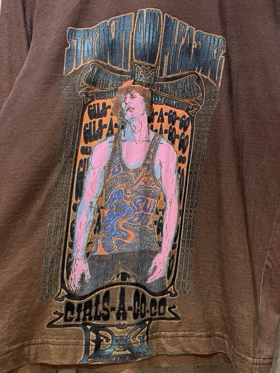 フェードがかったボディやサイケな色彩のプリントが特徴的な一枚です。