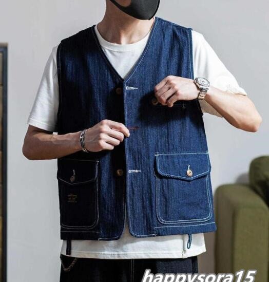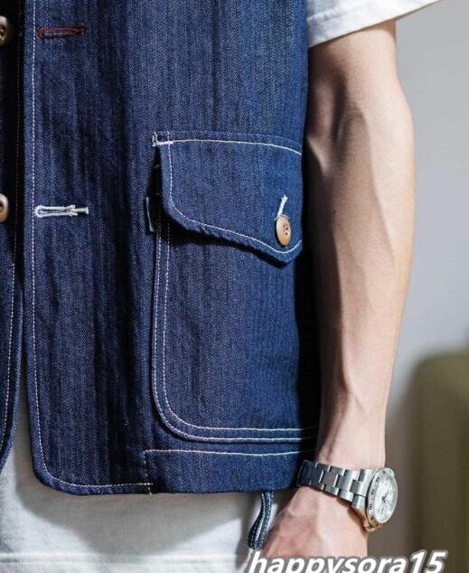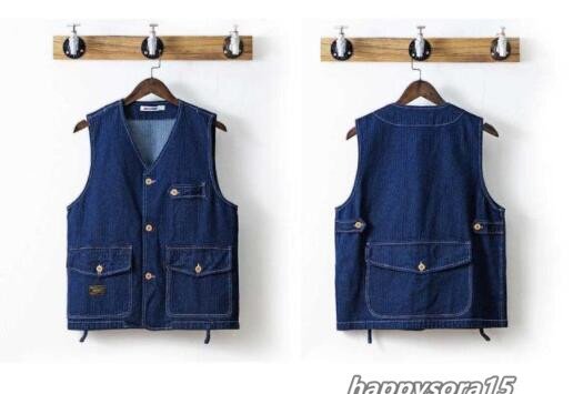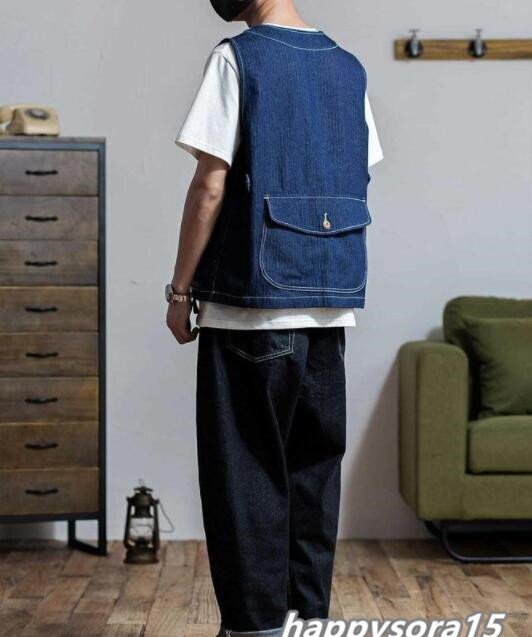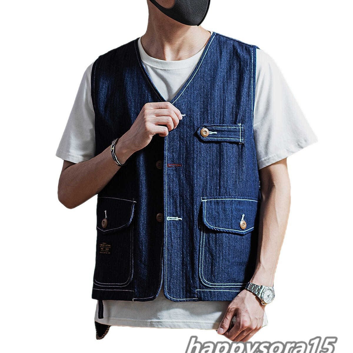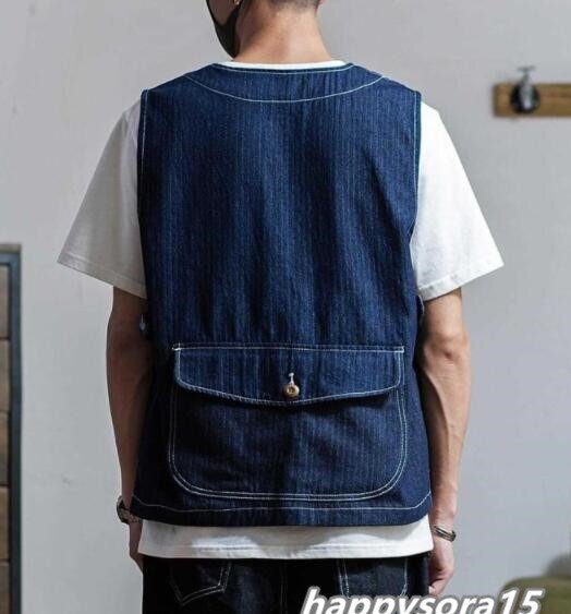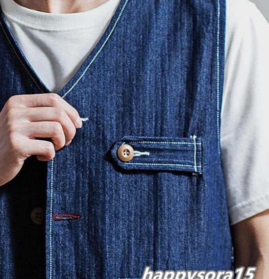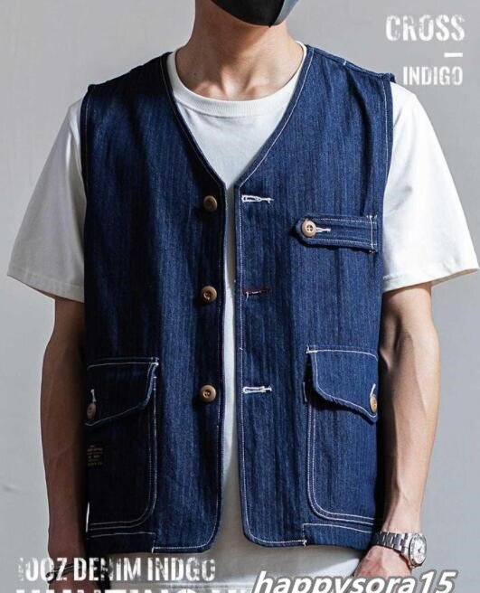 デニムベスト メンズ ジレベスト ワーク インディゴヘリンボーンデニム チョッキ アメカジ ヴィンテージ L