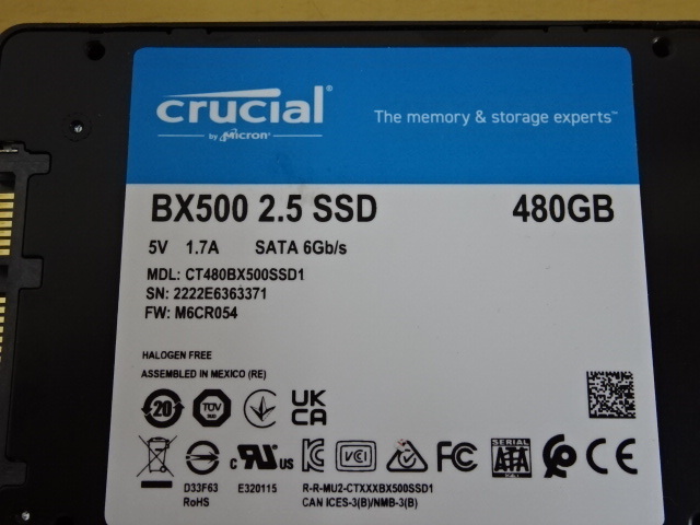 | 送料無料 crucial BX500 2.5 SSD 480GB 正常判定 初期化済み 管理P-6 |