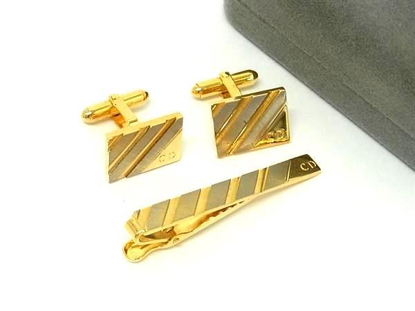 ■美品■ ChristianDior ディオール ヴィンテージ ネクタイピン カフスボタン アクセサリー 2点セット ゴールド系×シルバー系 DK4110