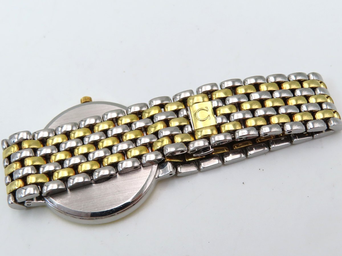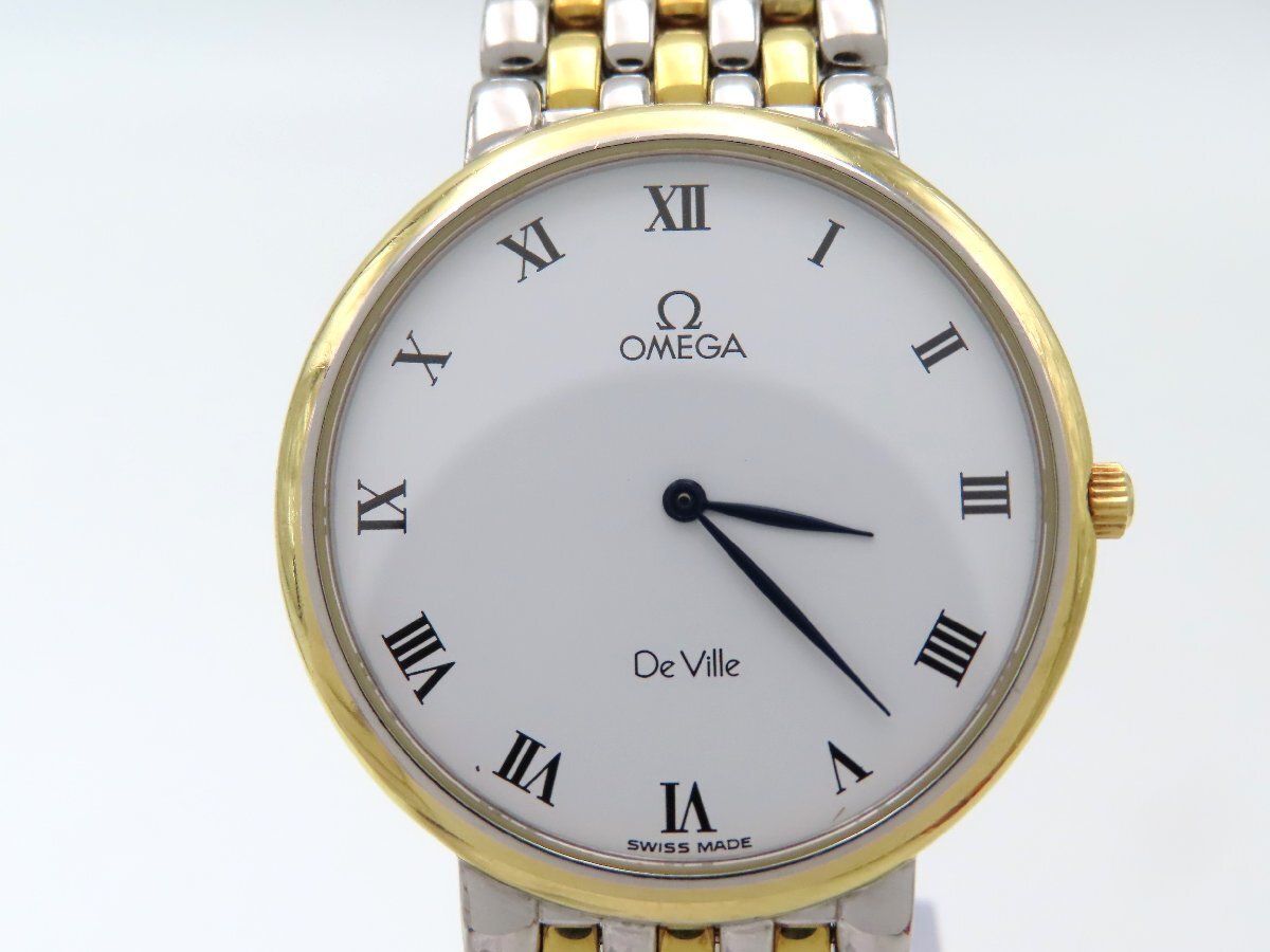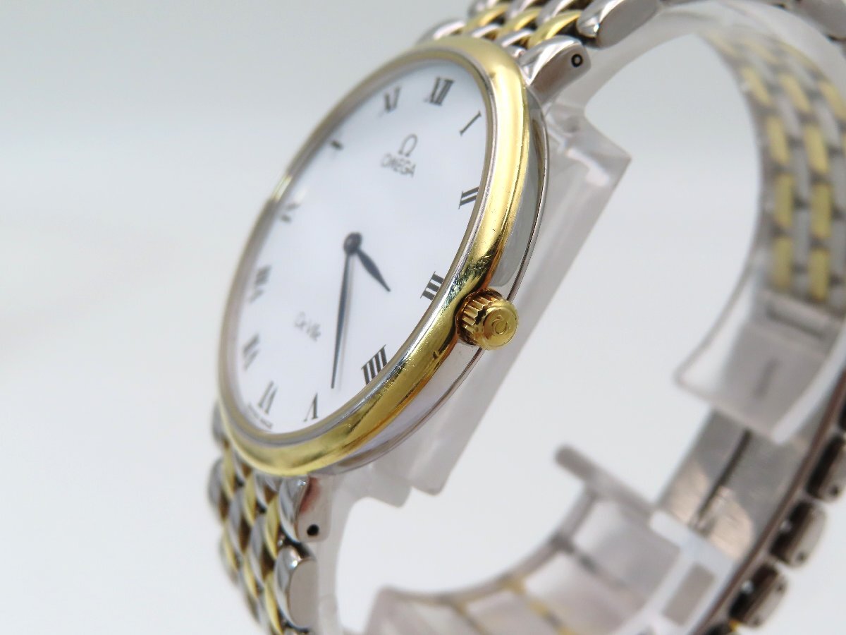 1円 オメガ デビル SS/YG ホワイト文字盤 ボーイズ 稼働 QZ 2987001