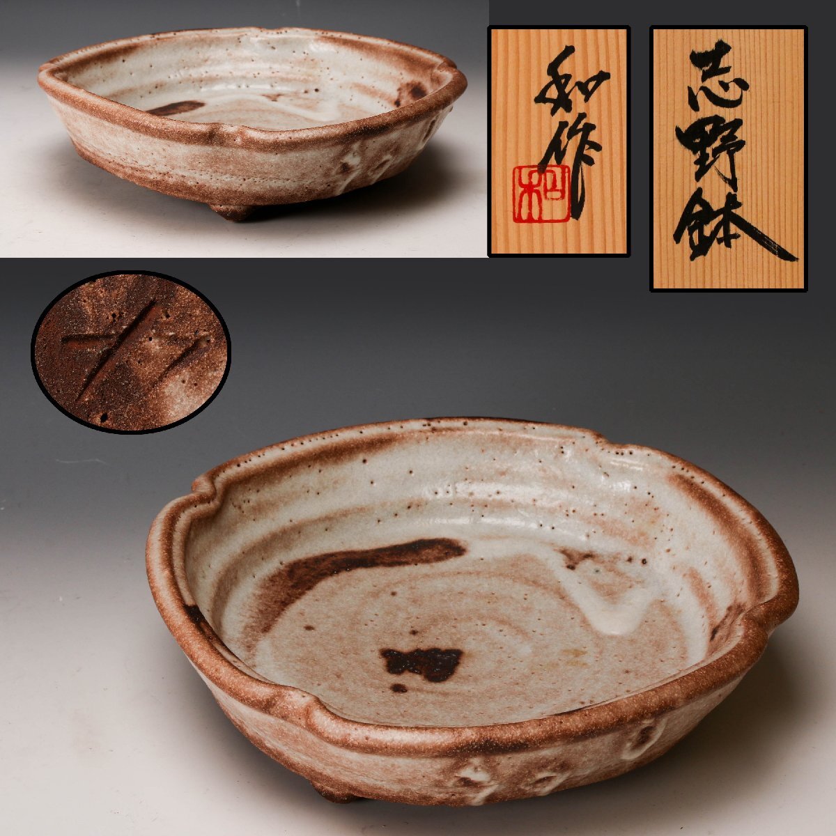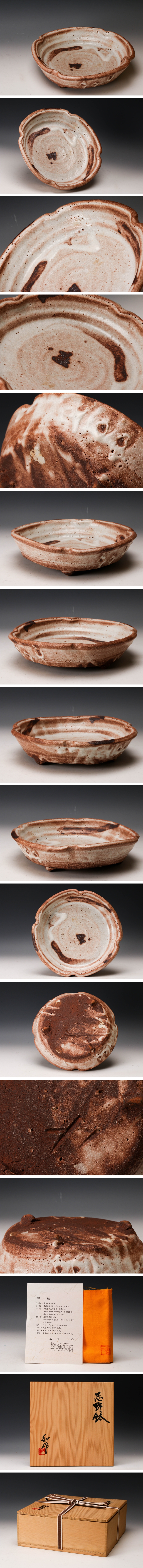 【佳香】山田和 幅26cm 志野鉢 共箱 共布 栞 本物保証