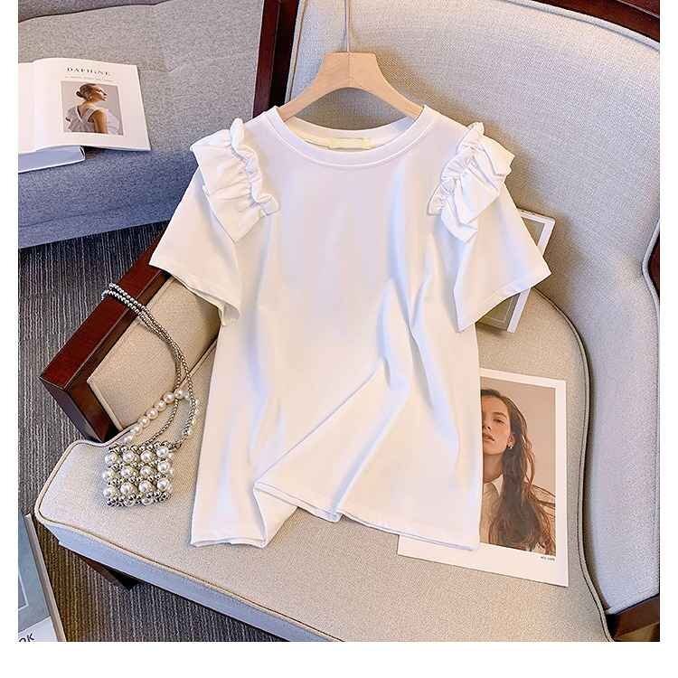 全3色 半袖Tシャツ フリル 切り替え 体型カバー 着痩せ 無地 【大きいサイズあり】 sweet系 4XL ブルー