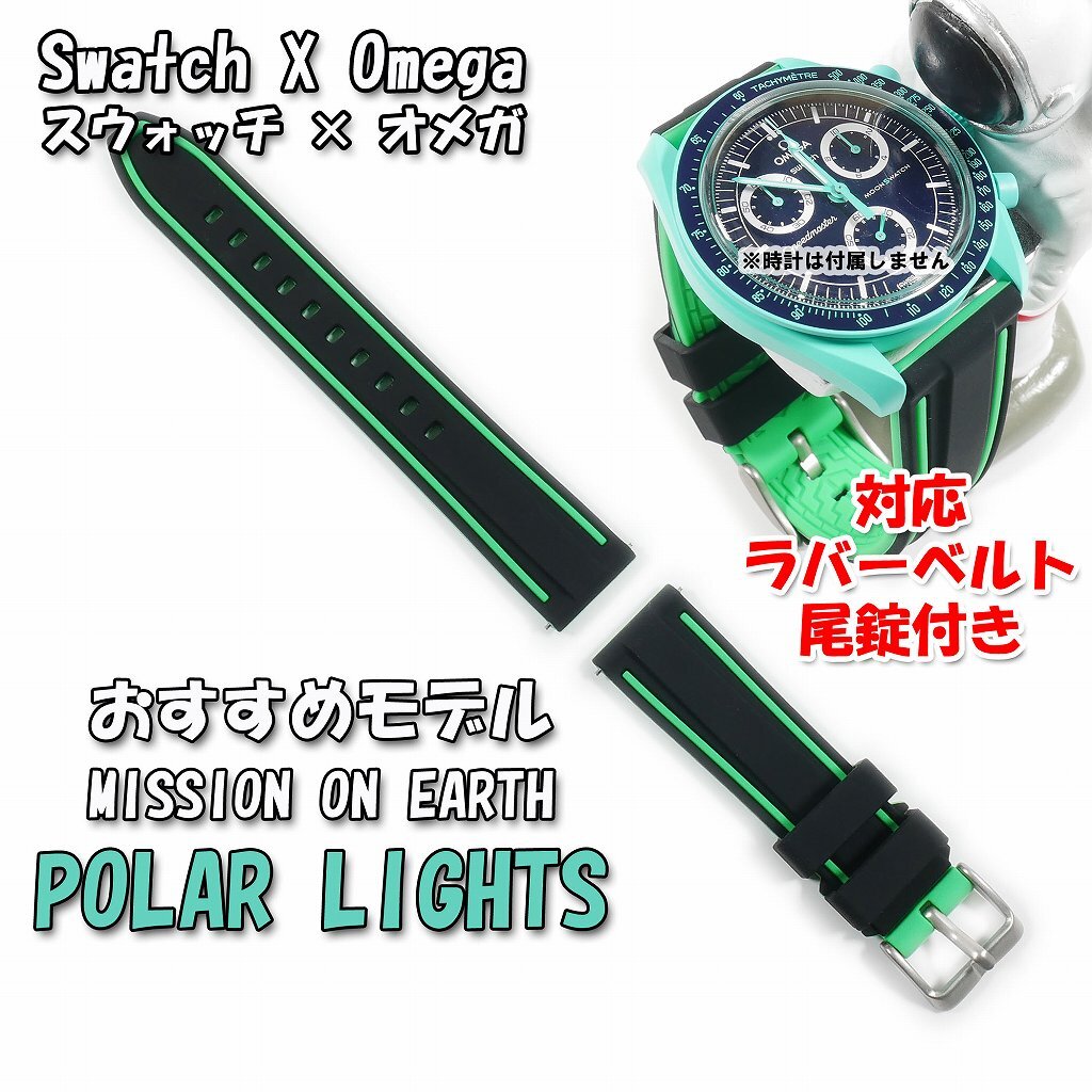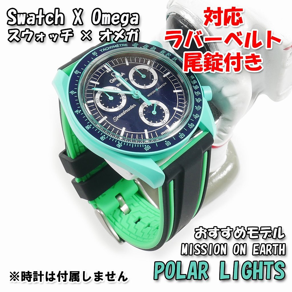 Swatch×OMEGA スウォッチ×オメガ MISSION ON EARTH POLAR LIGHTS 対応ラバーベルト 尾錠付き WB12A