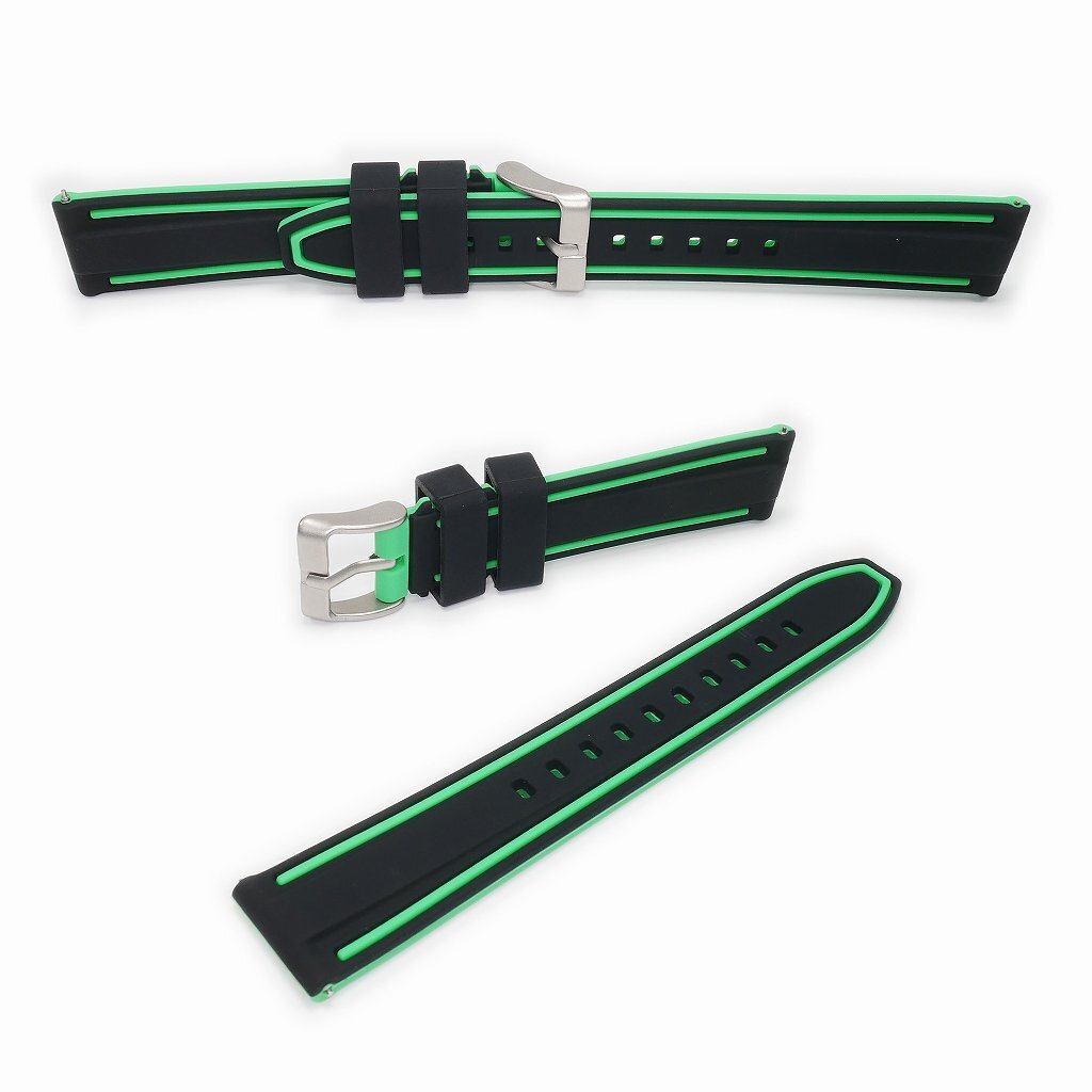 ・こちらは「表:ブラックカラーにグリーンライン/裏:グリーン」のベルトです。