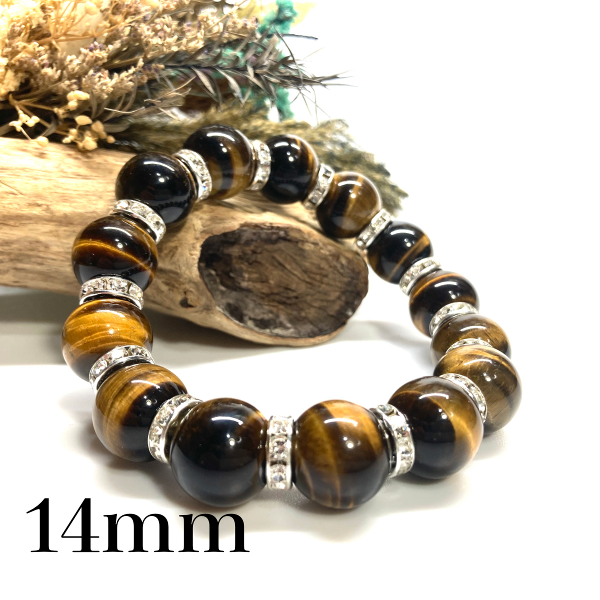 パワーストーン ブレスレット タイガーアイ 14mm 天然石ブレス (シルバー) 開運 金運 浄化 数珠ブレス メンズ 男性 プレゼント 14ミリ