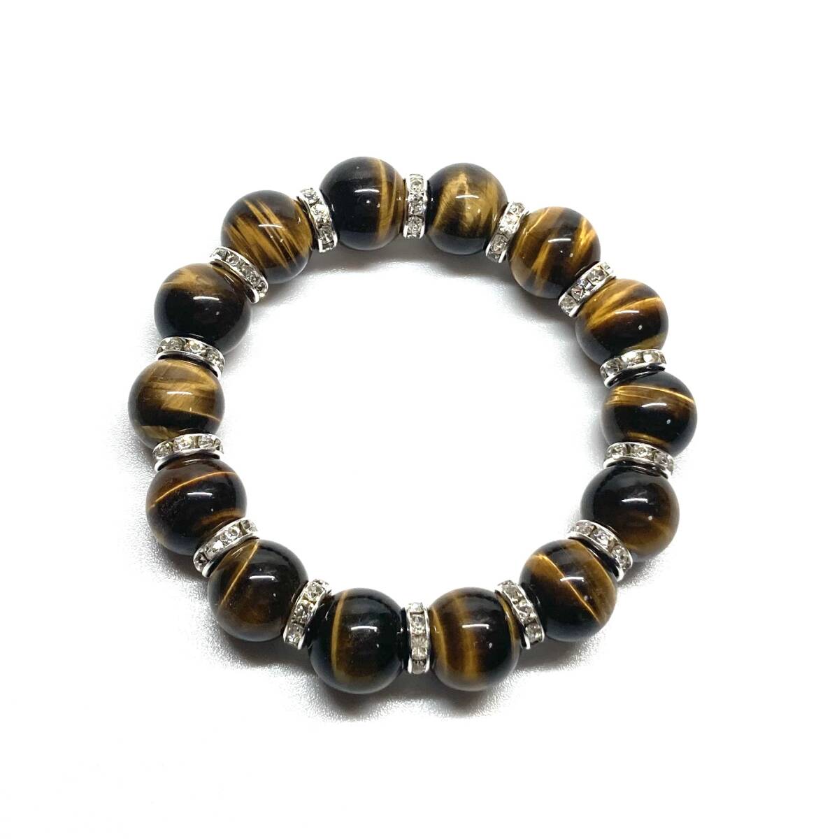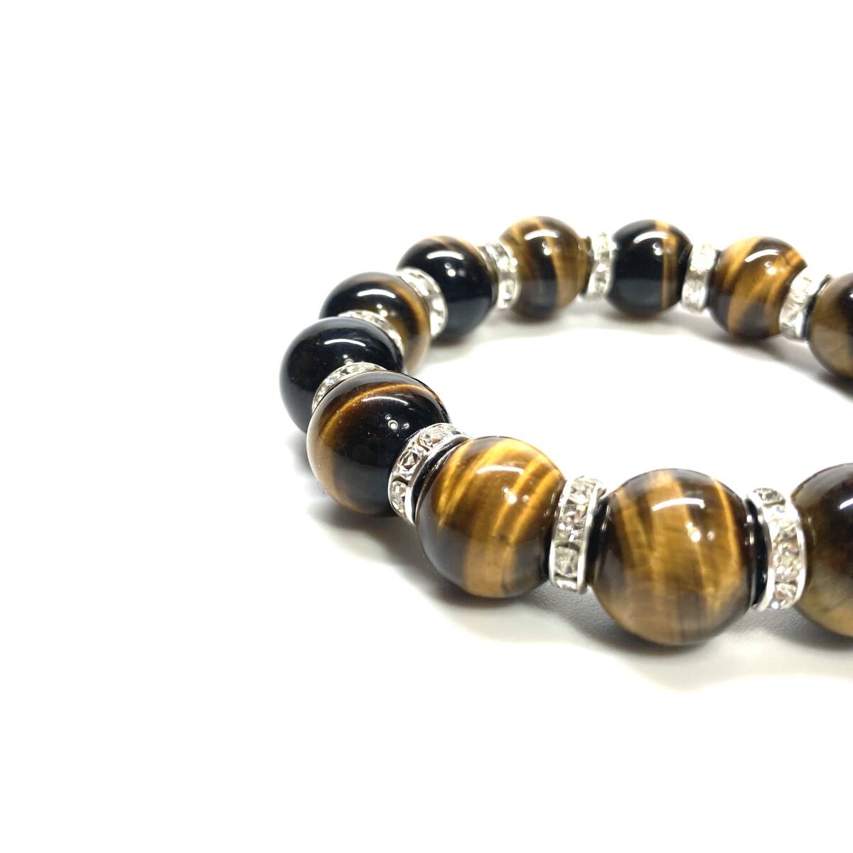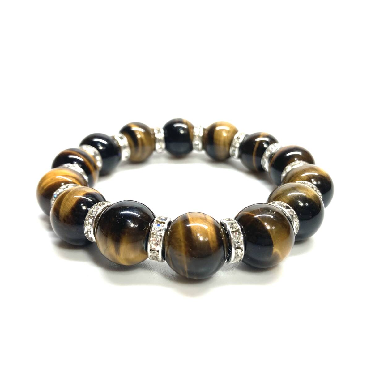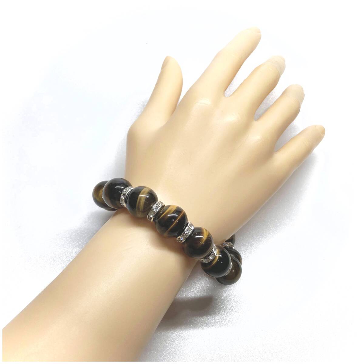 こちらは、14mm玉のタイガーアイを使用した天然石ブレスレットです。石との間にはロンデルを挟み高級感を演出しています。シンプルなデザインですのでどんなコーディネートとも合わせ易いブレスレットです。石大きさは14mm玉です。内周約17cmです。パワーストーンを付けてる方へのプレゼントにもお勧めです。14mmサイズのリクエストが多々ありましたので少量ですが販売しました。気になる方はお早めにどうぞ。