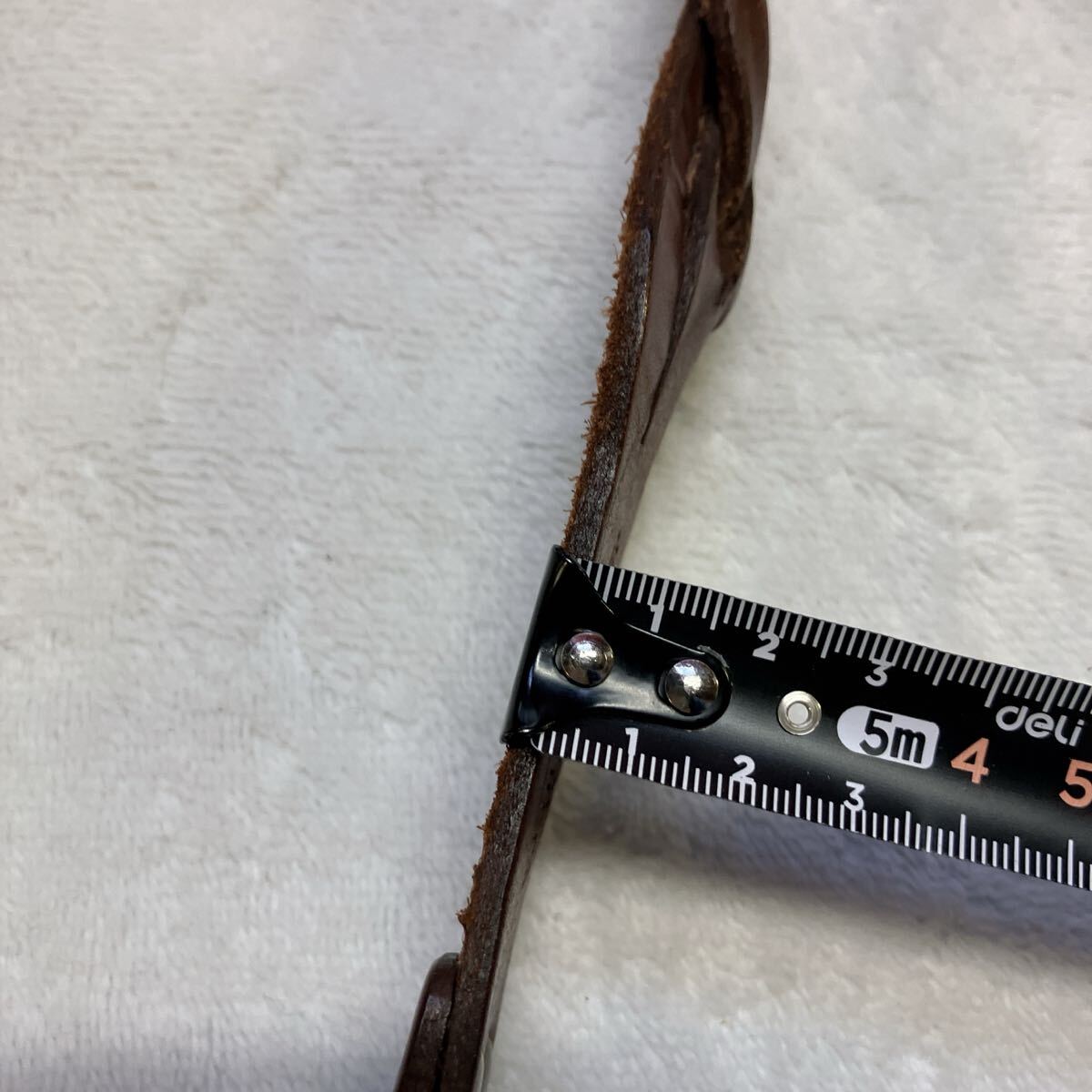Used item with some scratches on the buckle and signs of wear / fraying on the leather.