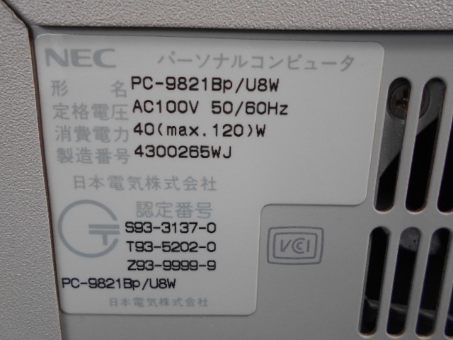 型式  : NEC  PC9821Bp/U8W      ジャンク