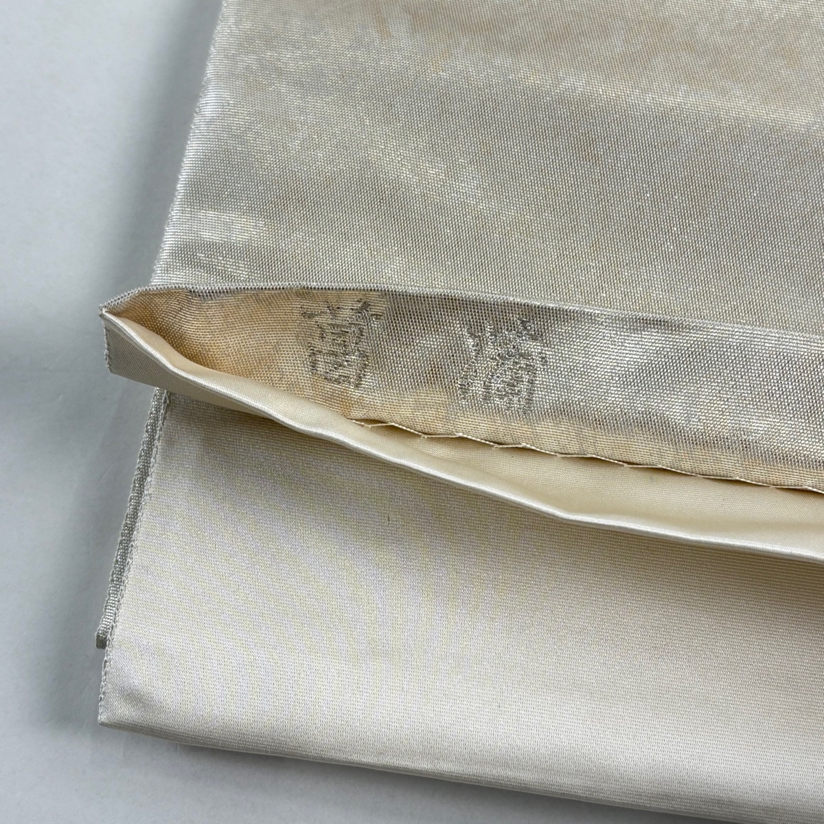 | 昭和23年に創業した西陣の老舗、「長嶋成織物」の作品です。 セミフォーマルでお使いいただける袋帯でございます。 見る人に重たい印象を感じさせない女性ならではの、気品豊かな一品です。 締め跡がございます。 締め跡沿いに汚れ、表地所々に箔の変色がございます。 裏地の垂先所々に小さなシミがございます。 リユース品としては良い状態で、まだまだご活用頂けると思われます。 ※なお、厳しく商品の状態確認を行っておりますが、記載の汚れ以外にも見落とし箇所がある可能性がある旨ご了承いただけますと幸いです。 沢山の商品の中からご覧いただき誠にありがとうございます。 | 状態ランク |