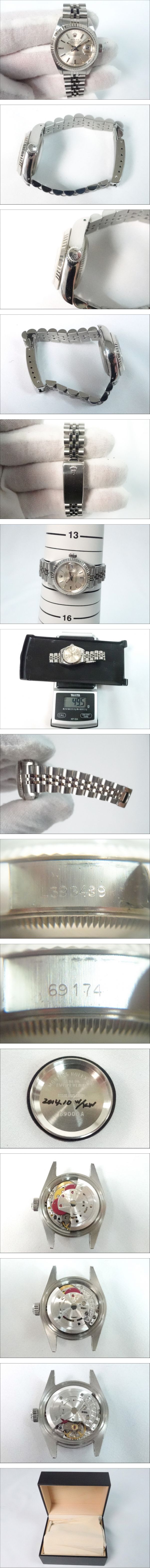 ブランド名:ROLEX 商品名:腕時計 型番:69174 シリアル:L393489 ベルト:純正 腕周り:画像にてご確認下さい。 総重量:画像にてご確認下さい。 サイズ:画像にてご確認下さい。 ムーブメント:自動巻き 付属品:ケース(純正ではございません。) 動作:稼働している確認ができました。 リューズを回して時間調整確認できました。 リューズを24時間回して日付の変更は確認できました。 その他の操作は未確認となります。 長時間の動作確認は行っていないため、日差含め正常な動作かは分かりかねます。 ※あくまでも検品時の動作となりますので予めご了承下さい。 状態:譲り受けた商品の為、購入時期や使用頻度など詳細は分かりかねます。 ベルトややヨレがございます。 中古品の為、フェイスや外観に傷やスレが見受けられます。 素人の為、ご質問いただいても回答できない場合がございますが、 画像を追加致しますので、欲しい写真があった場合ご質問頂ければと思います。 神経質な方のご入札はお控え下さい。目視でのご確認となります。 商品の状態に関しては画像にてご判断下さい。 ※オーバーホール歴は不明でございます。 ※裏蓋を外した画像がない商品は、裏蓋を外して内部の確認は出来ておりません。 ID:0319842025-10291-03 弊社はインボイス登録事業者です。 登録番号:T8370001039877 ※※入札前に必ずお読みください※※ 説明文をよくお読みの上ご入札下さい。 画像に写っているものが全てになります。 商品の重さを量っているものに関しては多少の誤差がありますので、ご理解下さい。 商品の状態に関してはご自身でご判断の上、ご入札下さい。 あくまでも主観に基づく感想です。状態判断は画像にてお願い致します。 商品に対しどちらの情報が欲しいか分かりかねる部分もございますので、落札前にご質問頂ければと思います。 中古品の為、神経質な方のご入札はお控え下さい。 ご入札後の入札取り消しは出来かねます。 専門知識がなく、ご質問いただいても回答できない場合がありますが 気になる点がある方は入札前にご質問下さい。 素人による検品の為、見落としている場合もございます。 ご了承下さい。 ノークレーム・ノーリターンでお願いします。 | |||